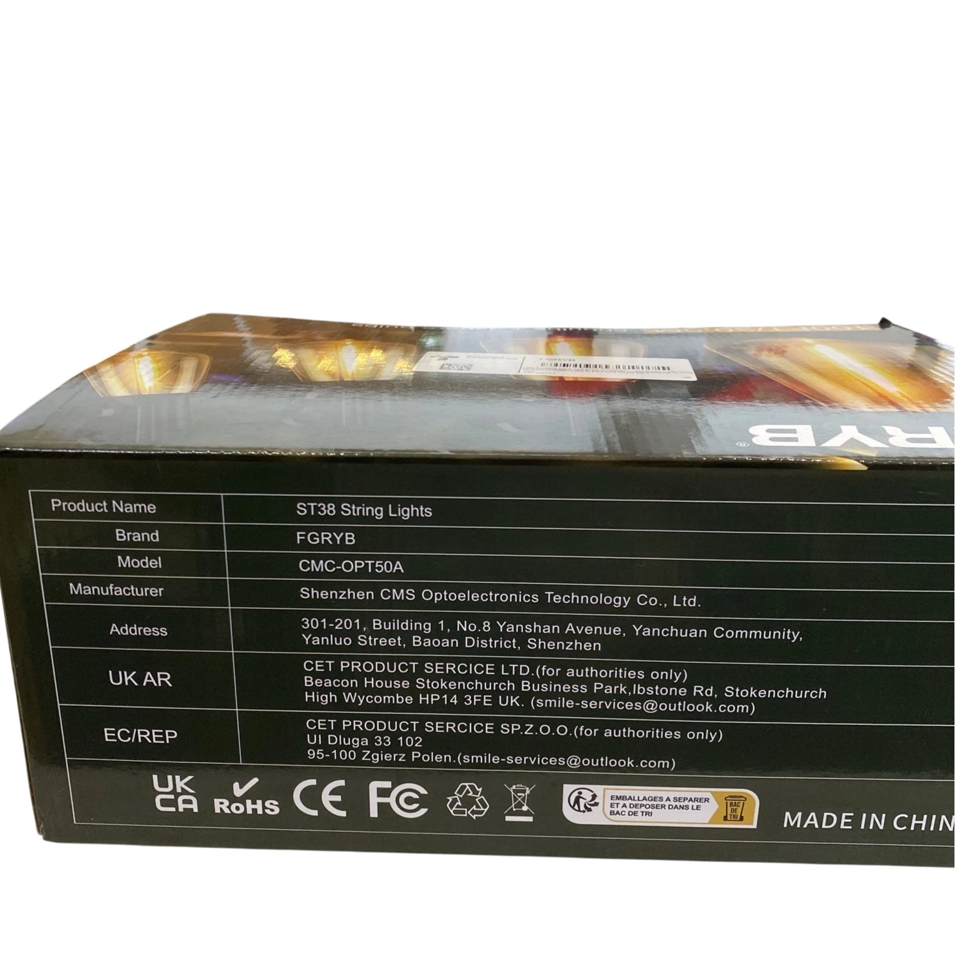 FGRYB ST38 String Lights 100FT 50 Bulbs 3 Spare Waterproof Garden Lighting