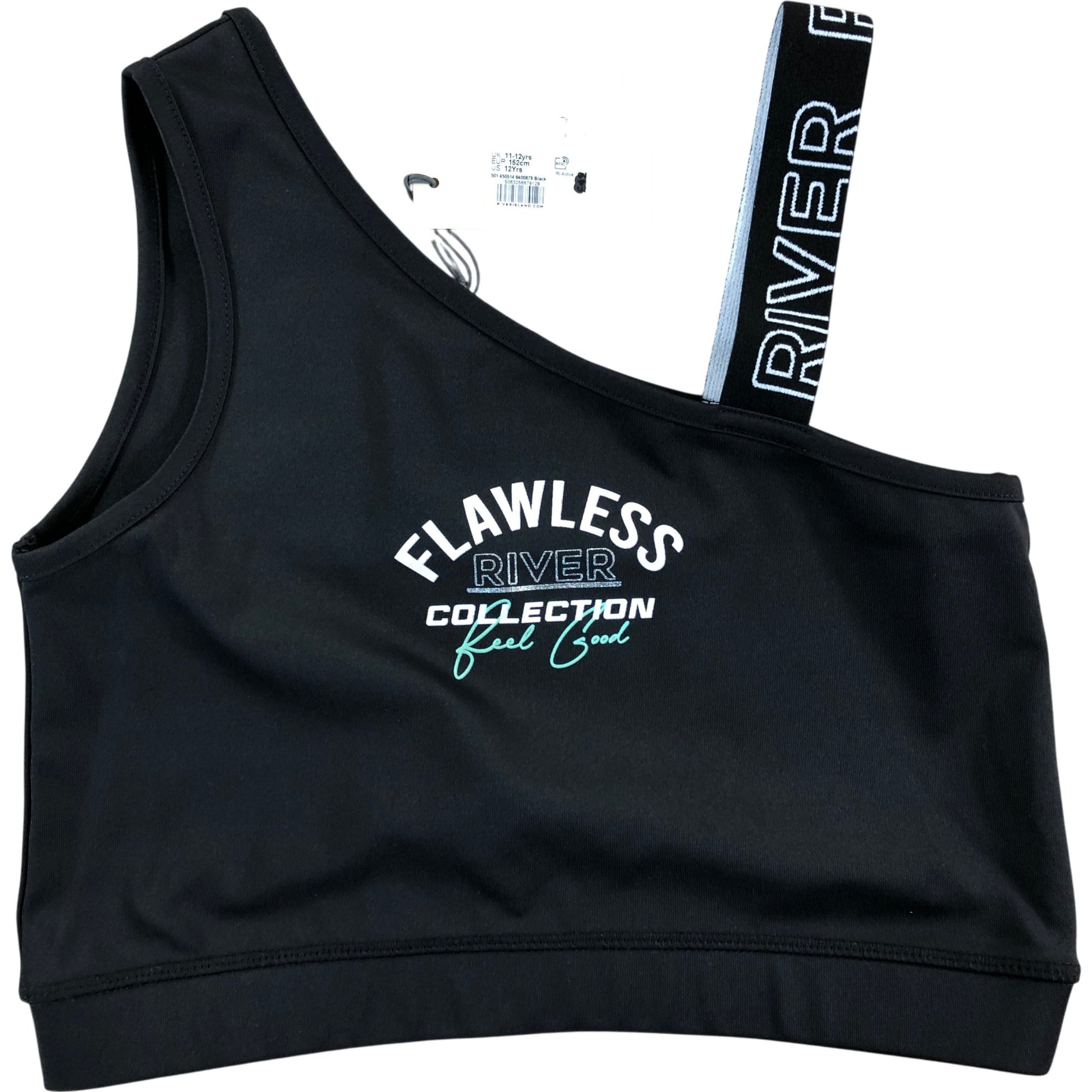 FLAWLESS RIVER ISLAND Activewear Crop Top UK11-12 Girls Black One Shoulder Gym