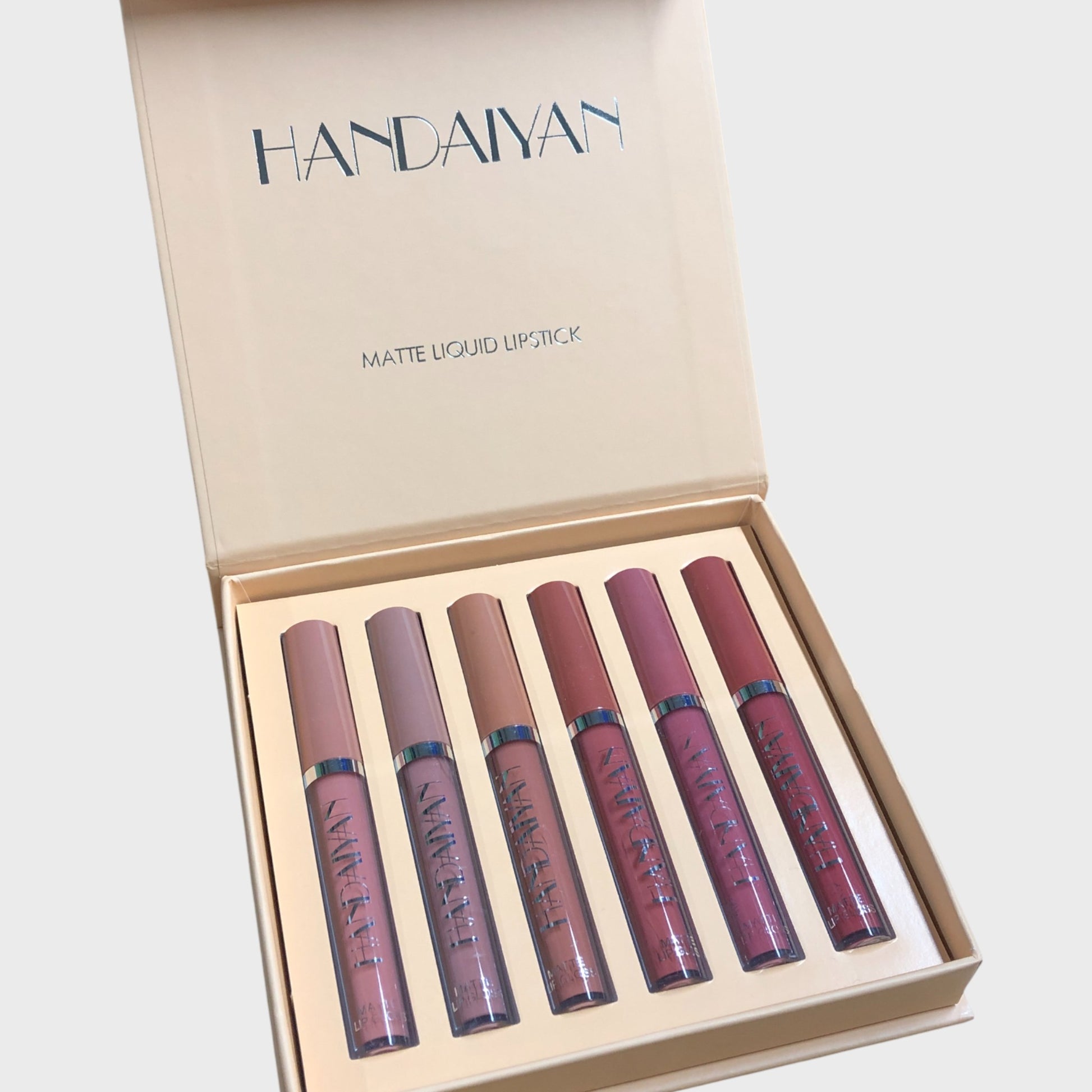 Discover the HANDAIYAN collection of six premium matte liquid lipsticks, each delivering 2.5 ml of long-lasting, waterproof colour.
