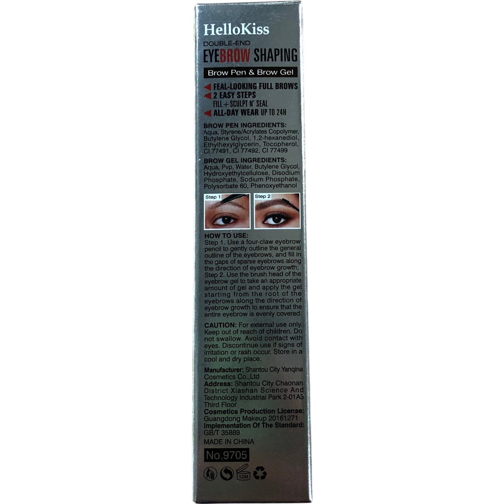 - Instructions: Use four-claw eyebrow pencil for outline and brush head for gel application