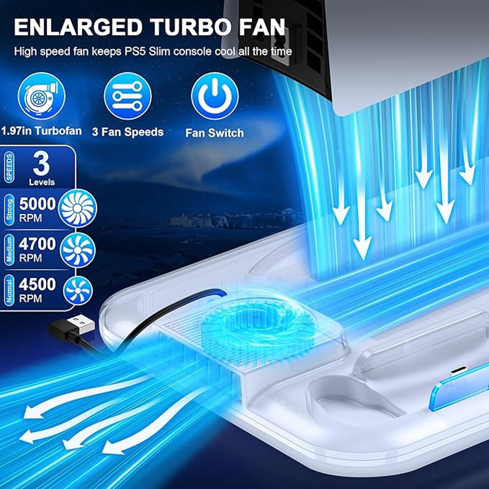 HEYLICOOL PS5 Slim Stand and Cooling Station with Dual Controller Charging