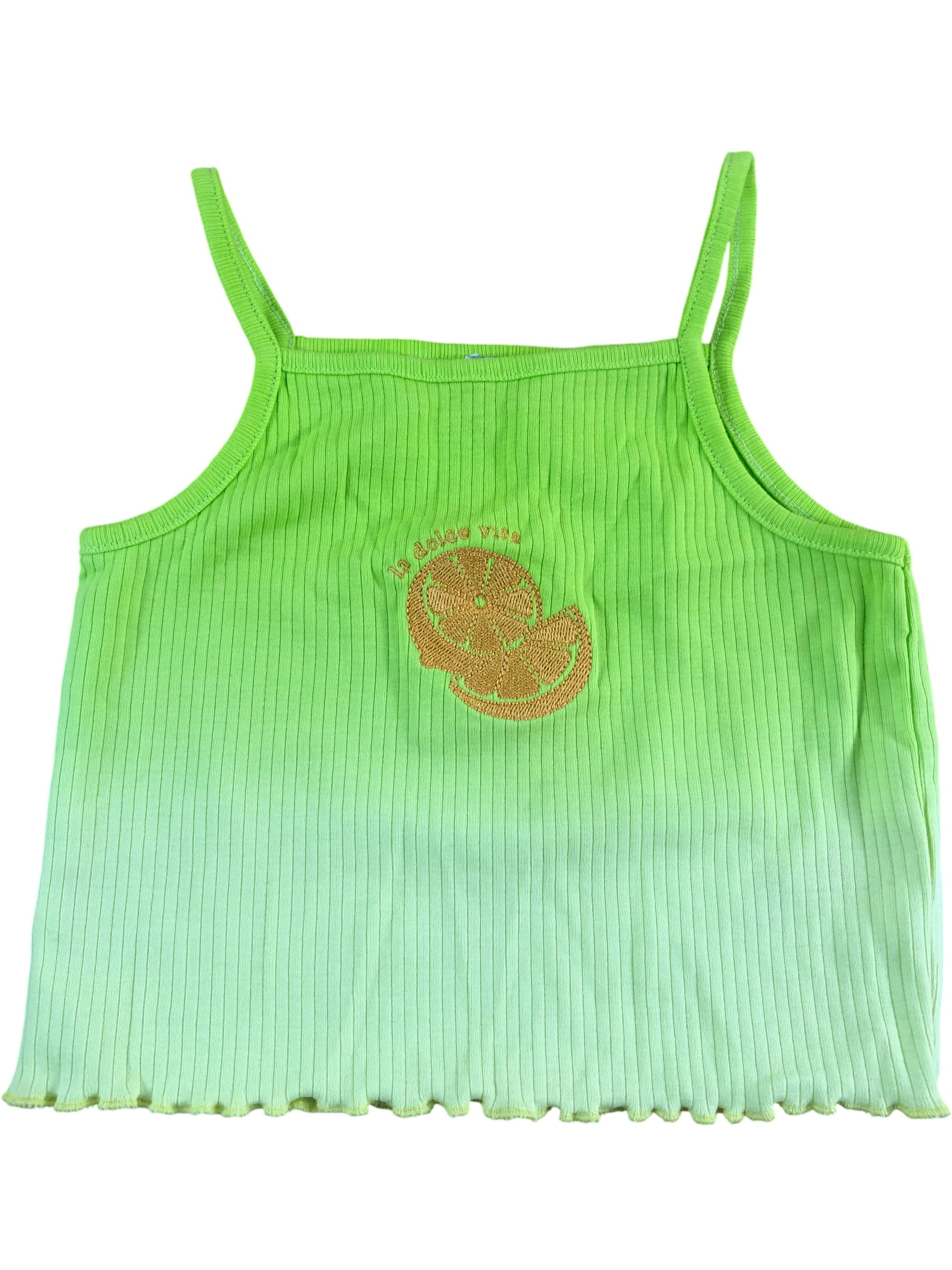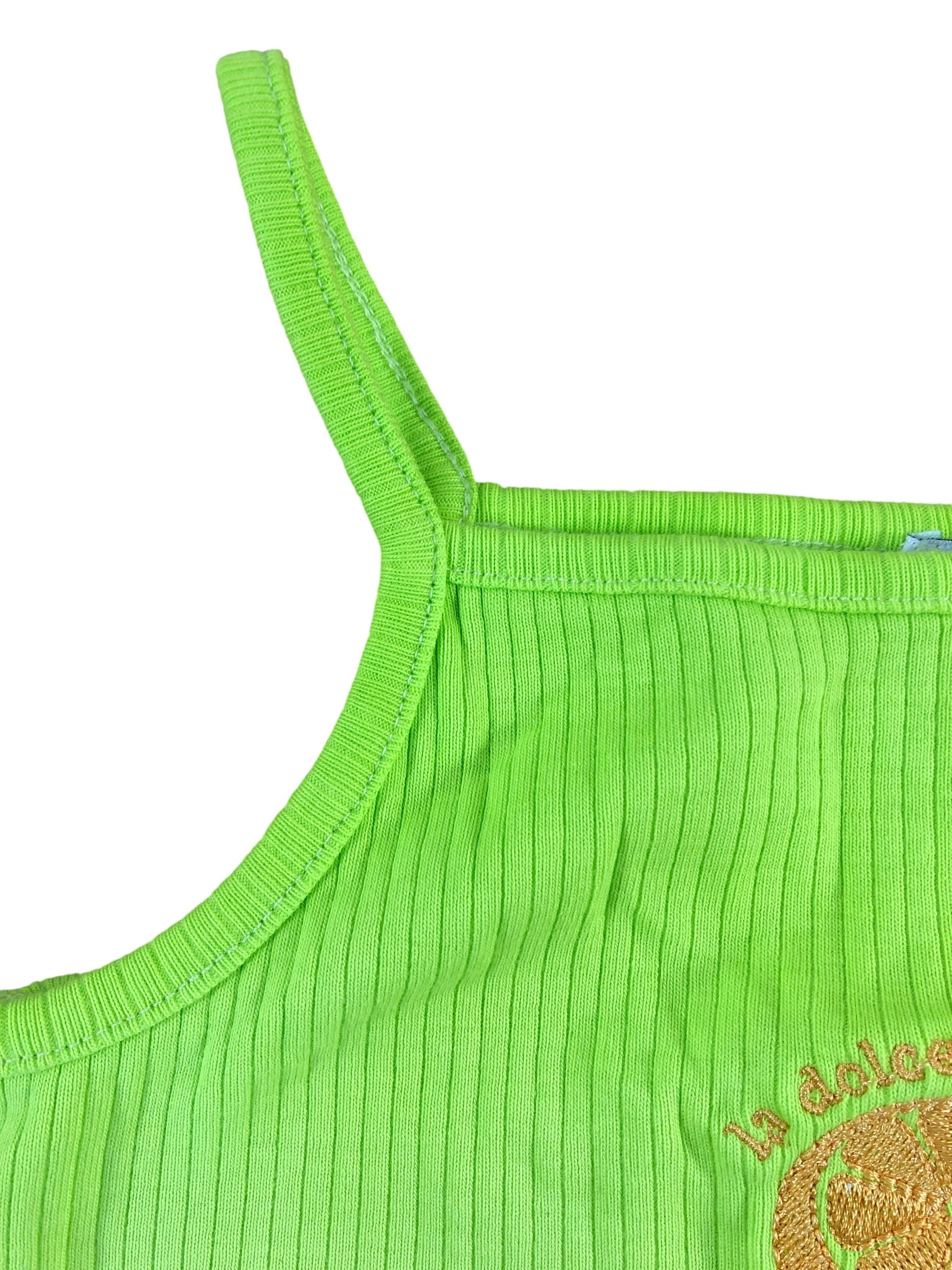 La Dolce Vita Girls Crop Top Neon Green Ribbed Summer Style Emblem 11-12 Years