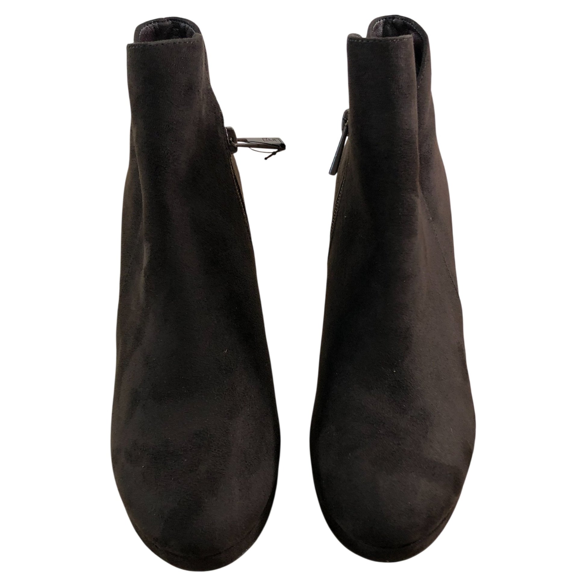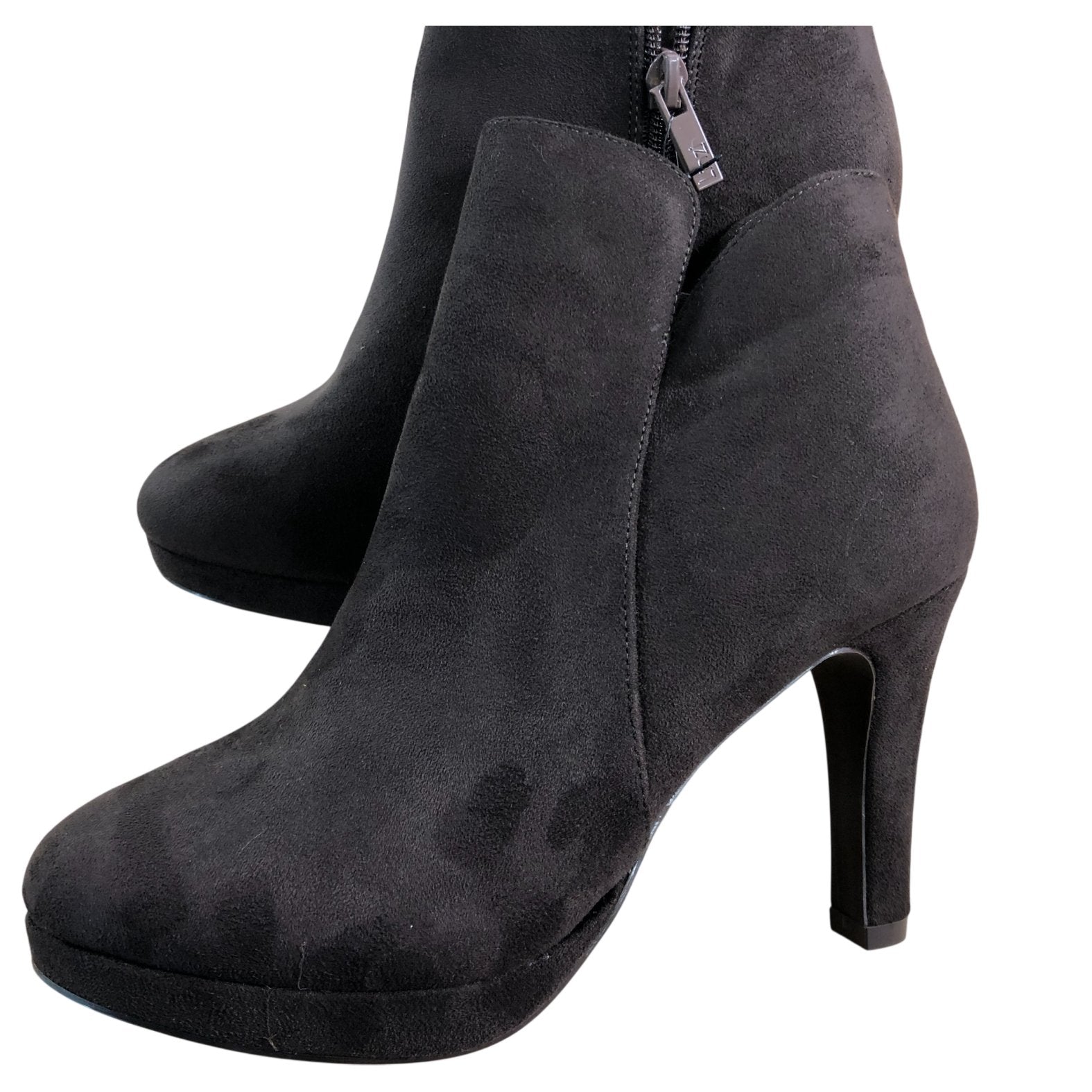Linzi Women's Black Suede Ankle Boots Size 4 High Heel Zip Closure Fashion
