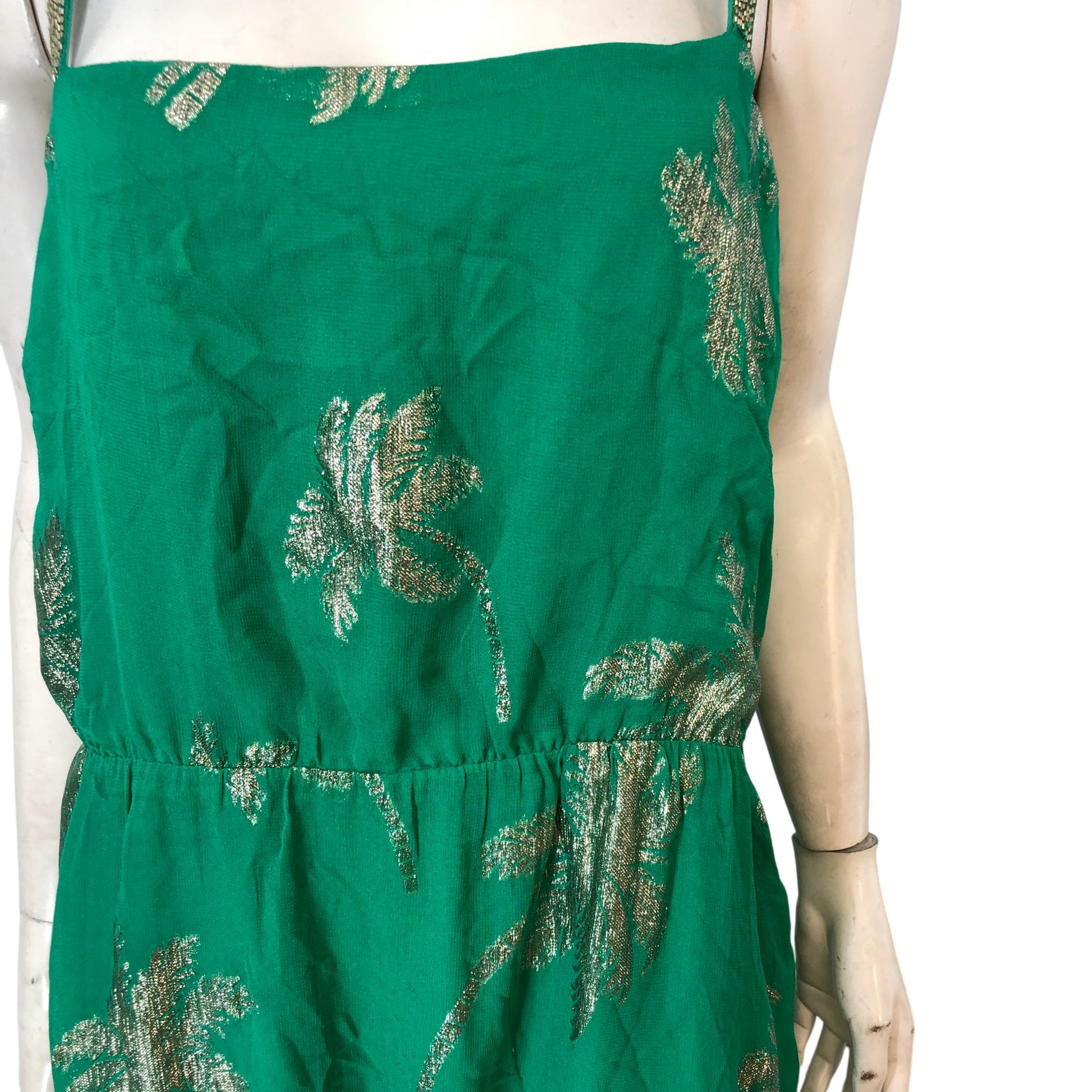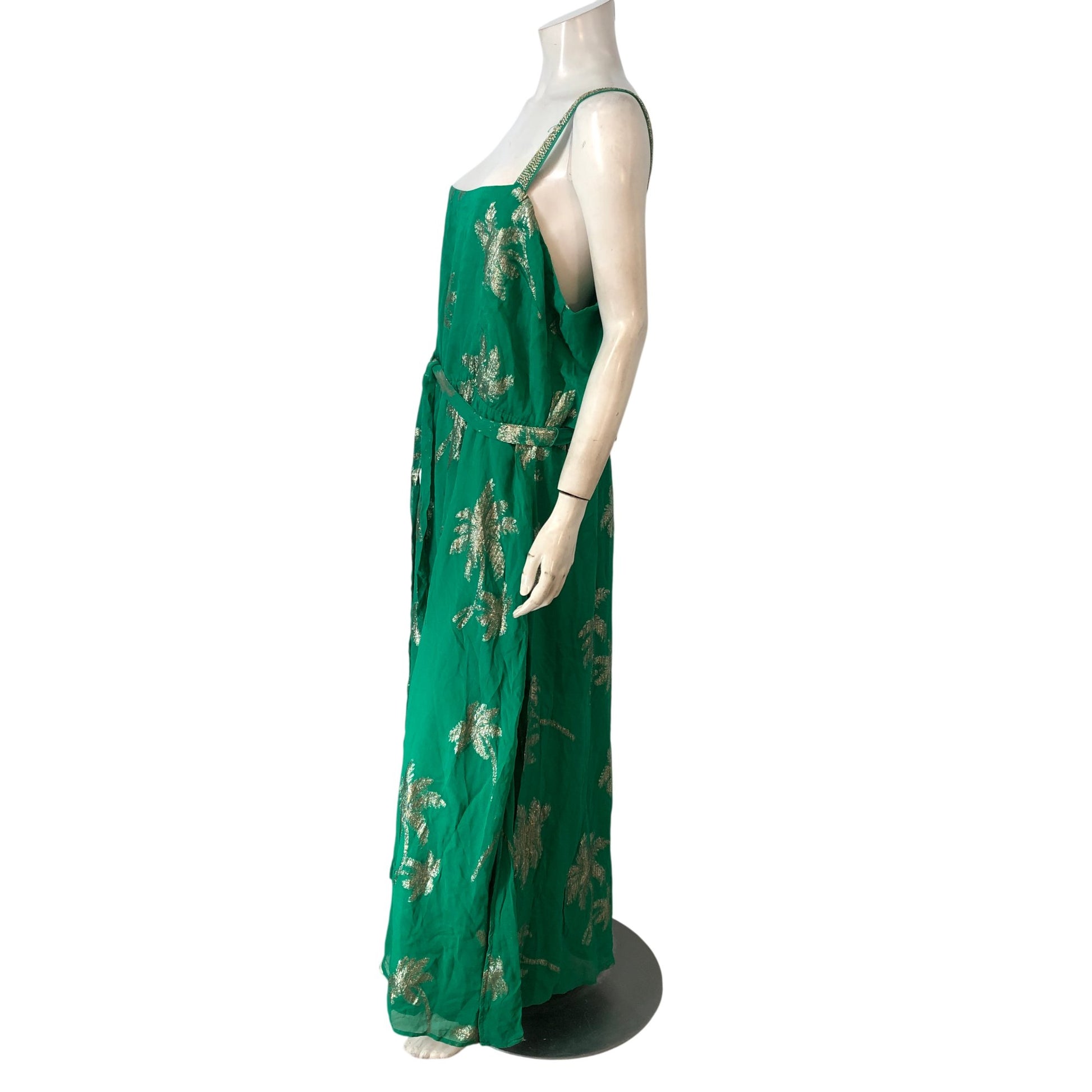 Love And Roses Maxi Dress UK18 Women's Green Palm Print With Beaded Straps