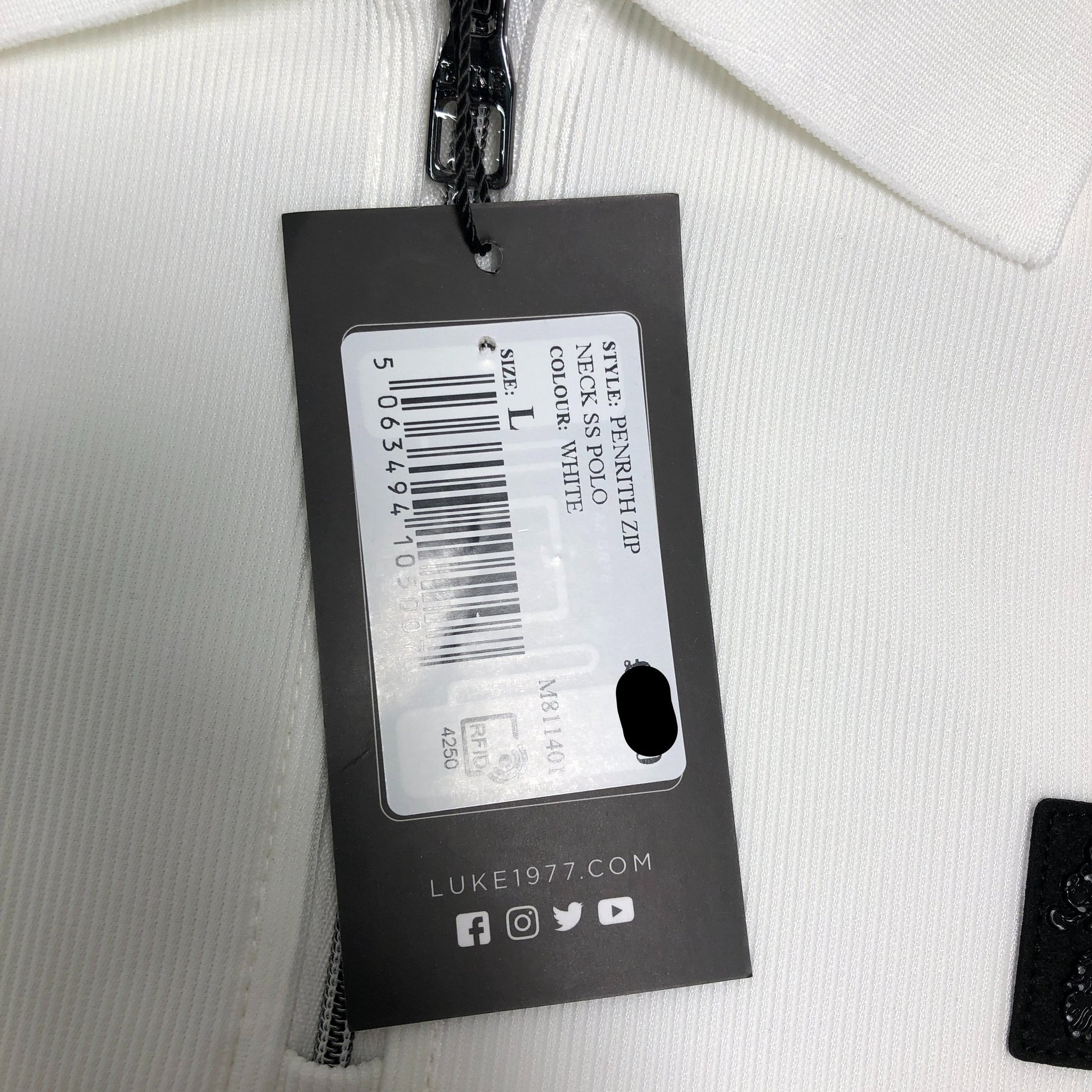 Luke 1977 Mainline Penrith Zip Neck Polo Shirt L Men's White