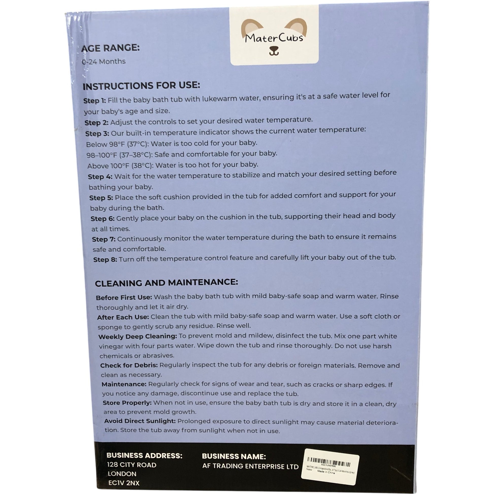 MATERCUBS Collapsible Baby Bath Tub with Seat Support Cushion Grey 0-24 Months