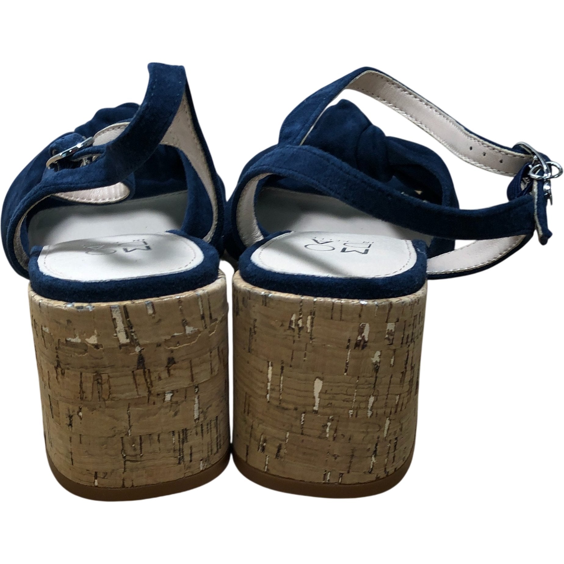 Moda In Pelle Mokara Navy Suede Heeled Sandals UK6 Women's Knot Front Block Heel