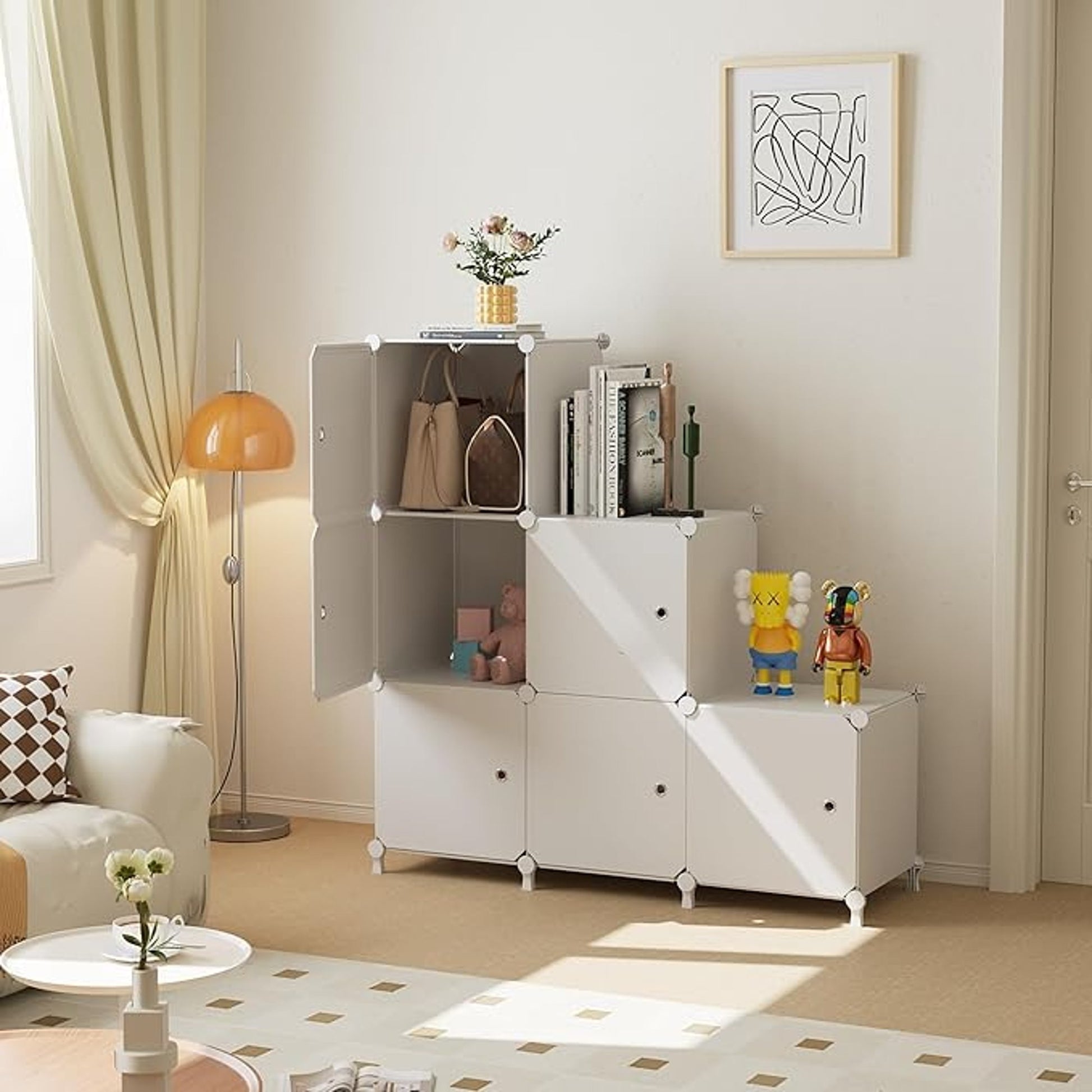 Modular Bookshelf Storage ATTDETJL 6-Cube Storage Unit with Doors Cube Organizer