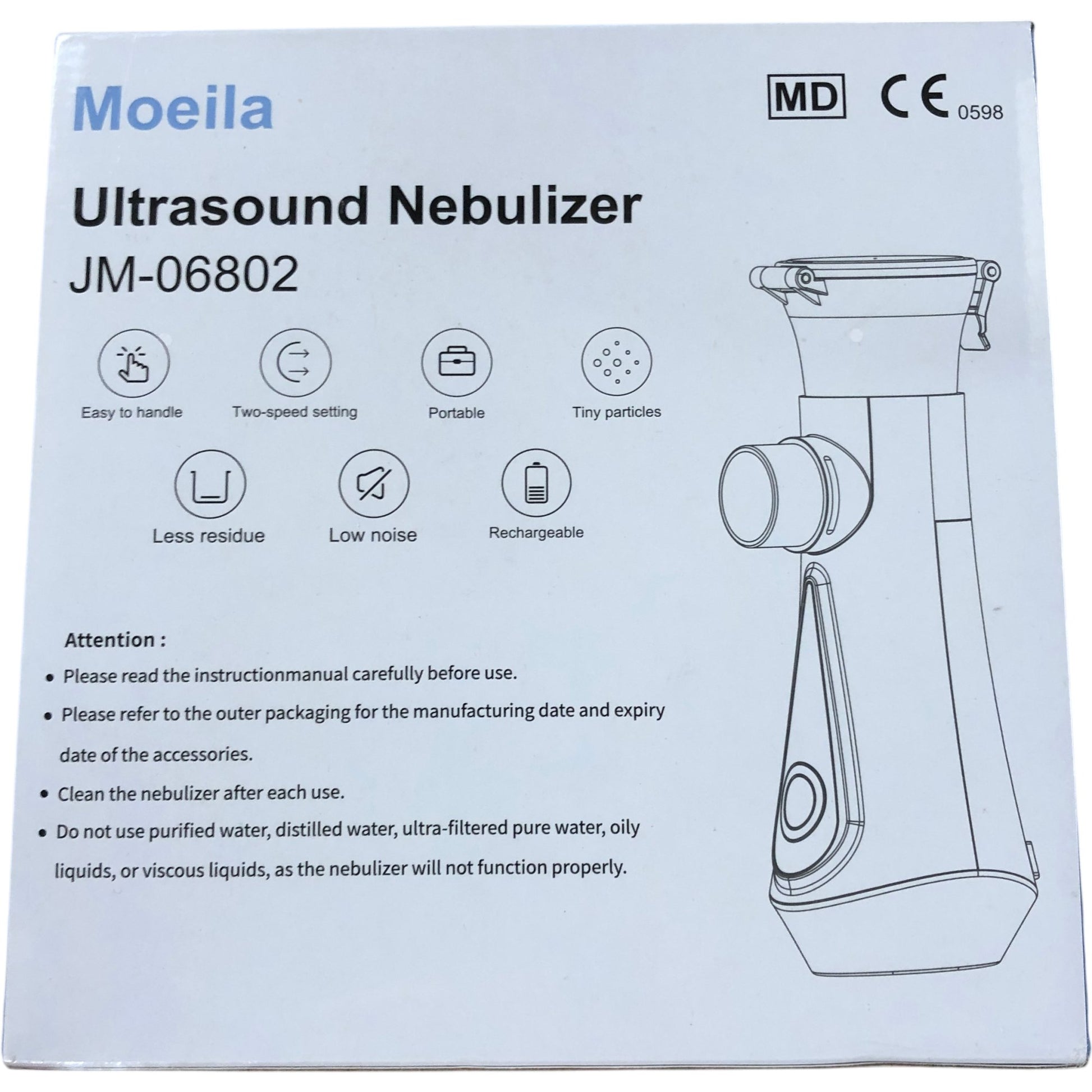 MOEILA Ultrasound Nebulizer JM06802 Portable Rechargeable Low Noise Nebuliser