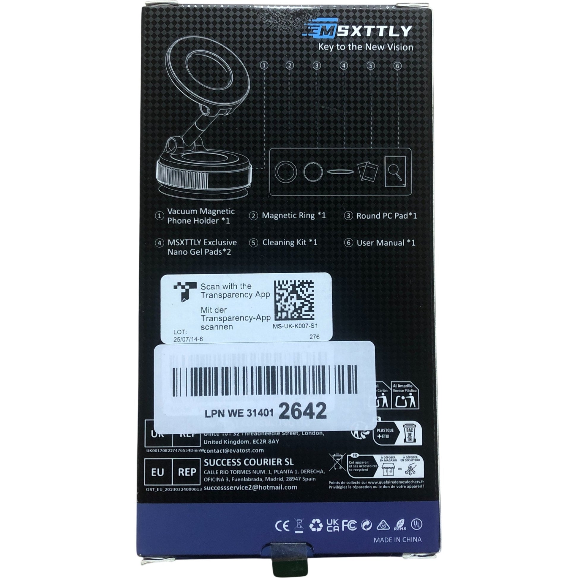 MS5XTILY Vacuum Magnetic Phone Holder K007 360 Degree Flexibility Black Modern