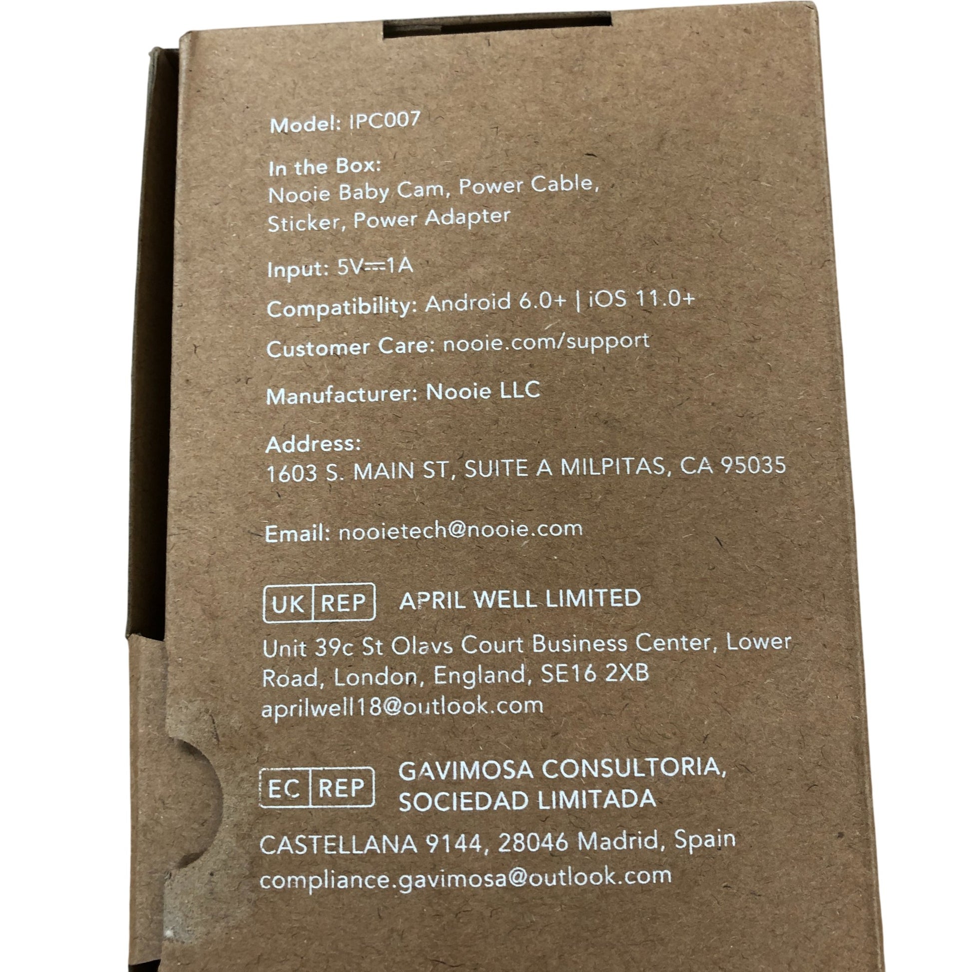 - In the Box: Nooie Baby Cam, Power Cable, Sticker, Power Adapter