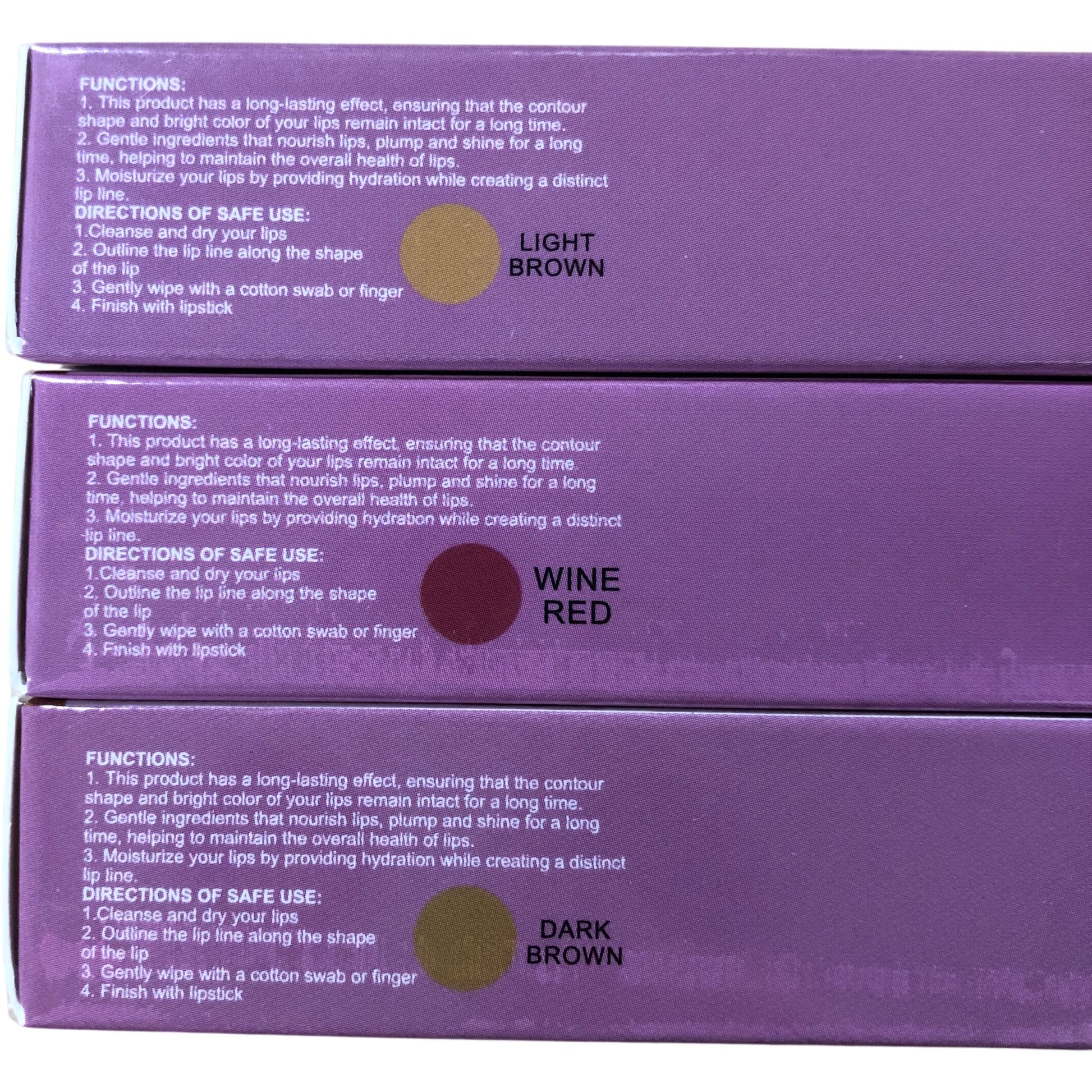 Petansy 3in1 Peel Off Lip Liner Lip Deline Tattoo Liner Set Dark Brown Wine Red