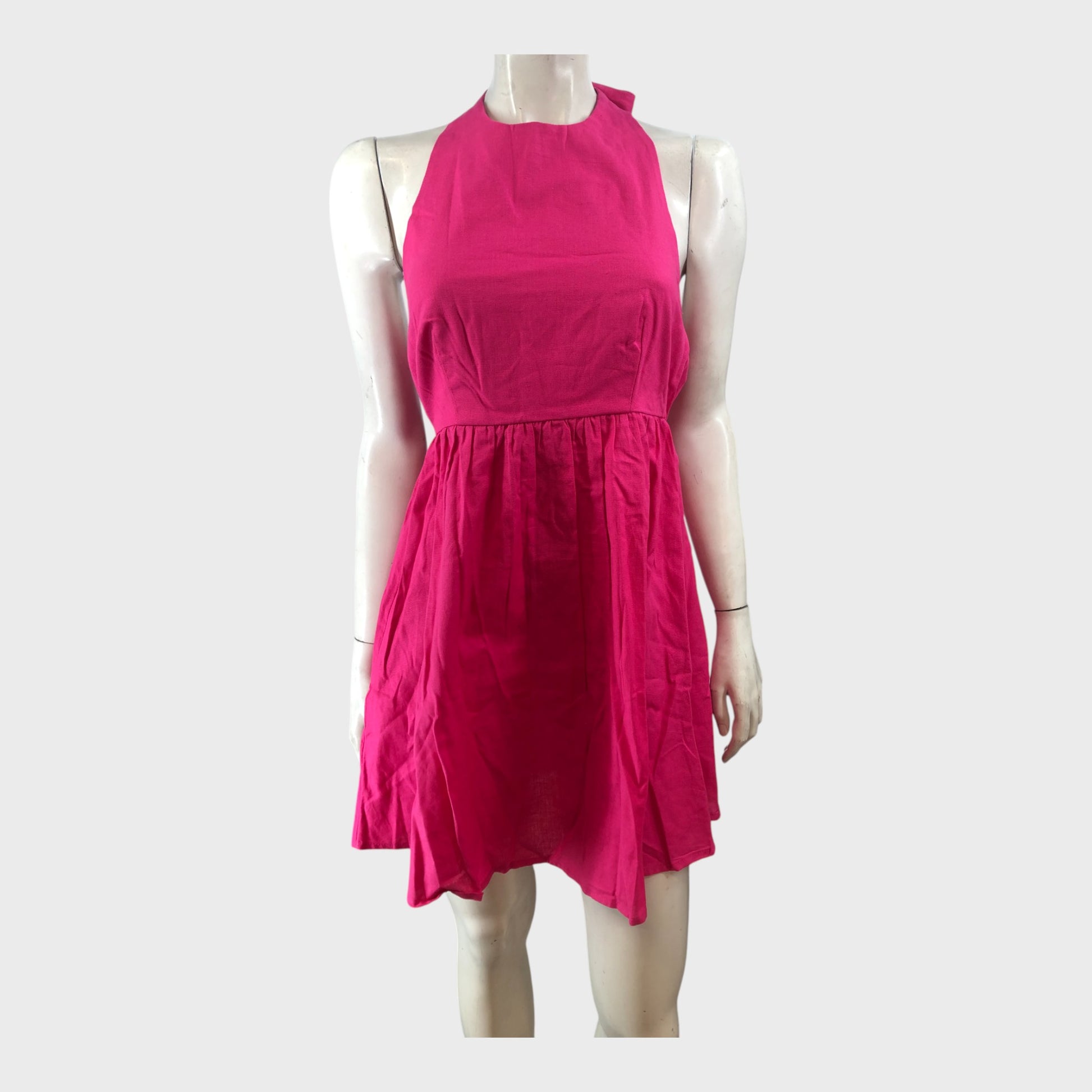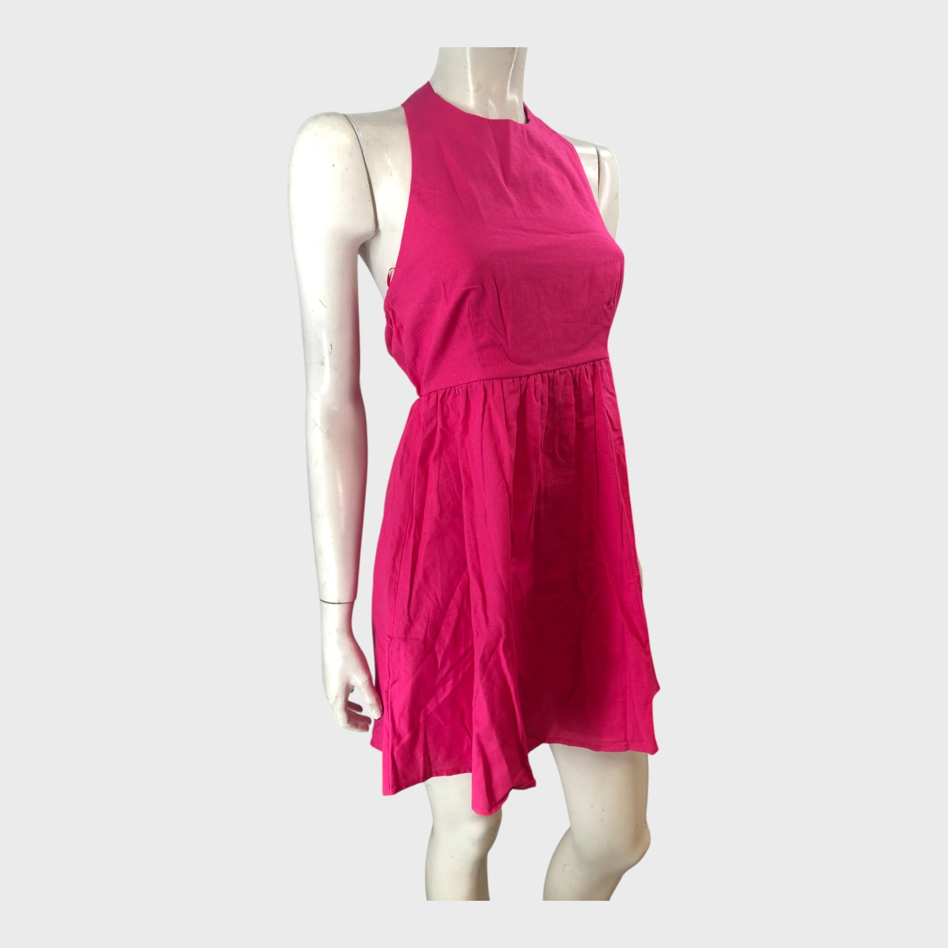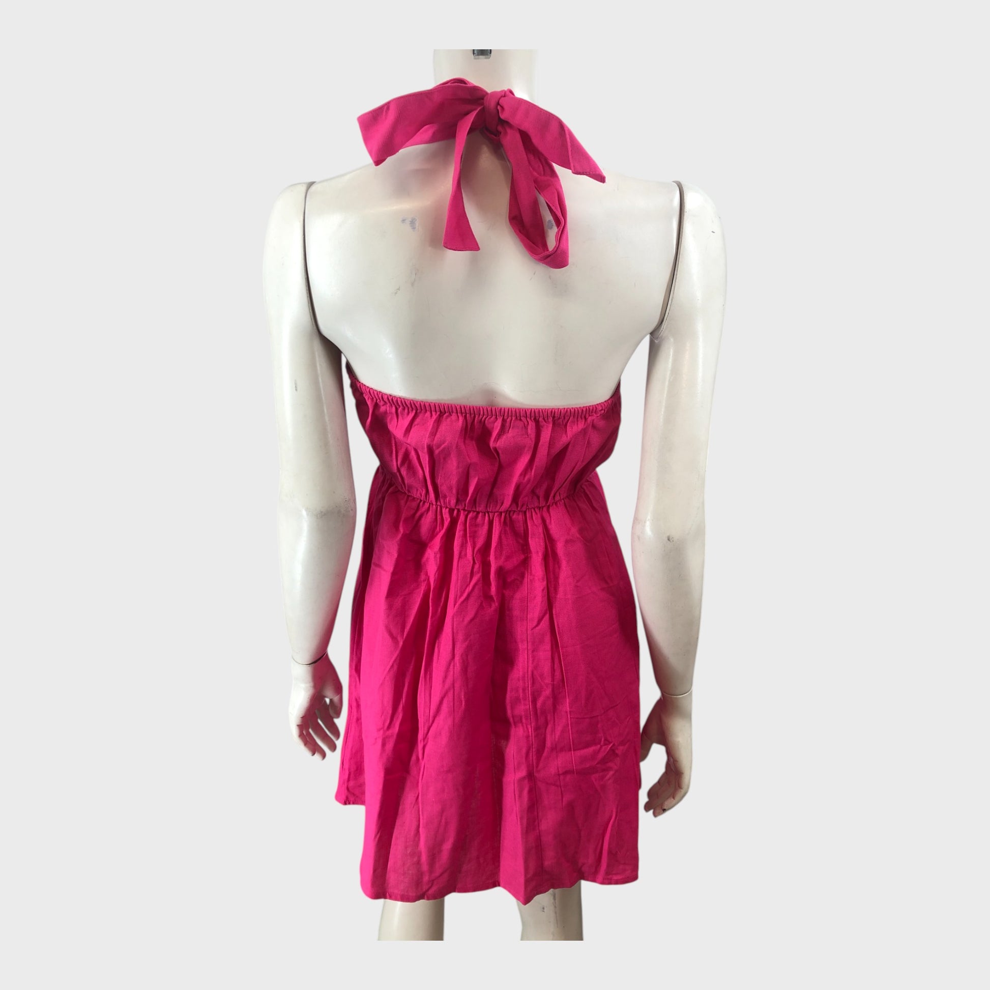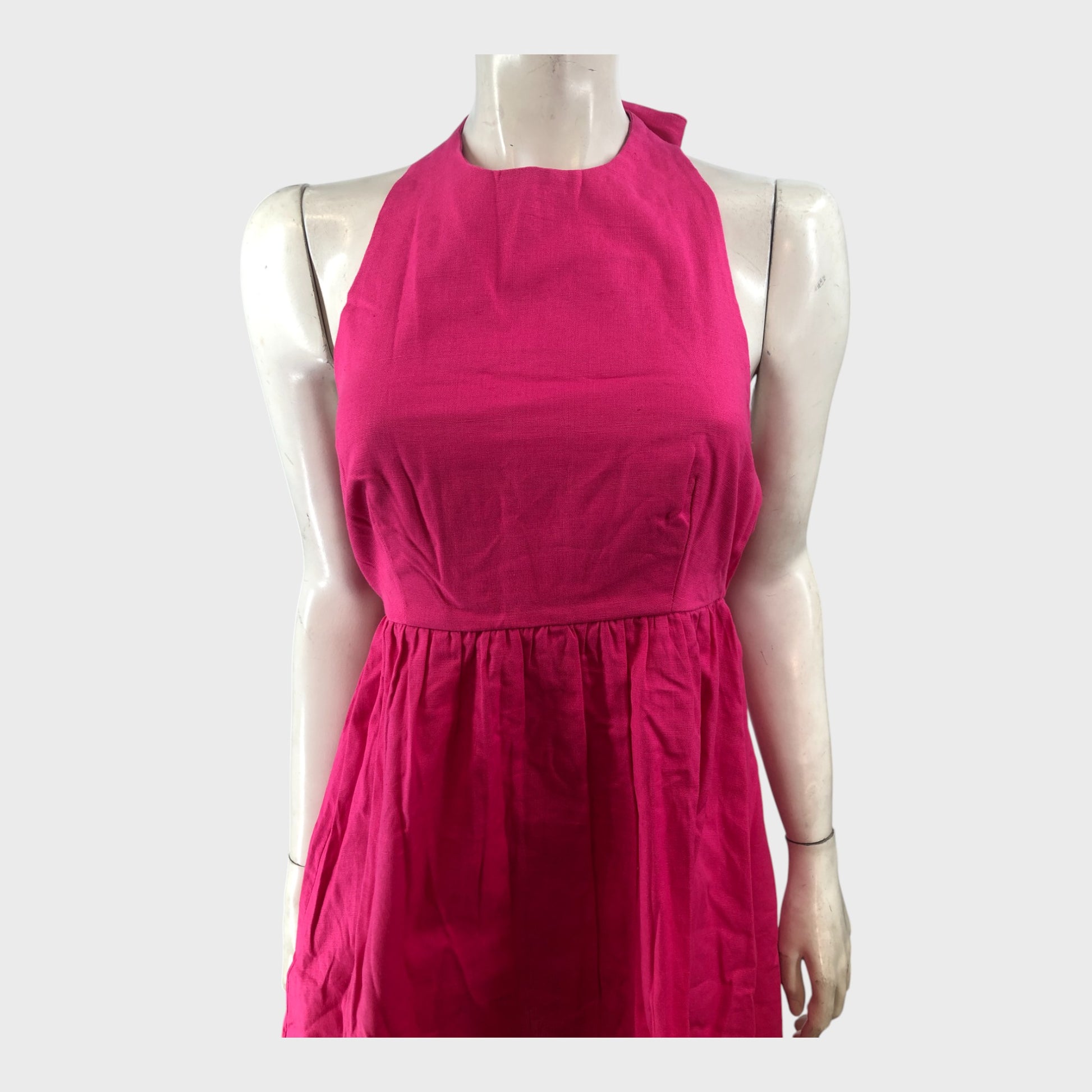 Made from linen, this halter neck dress boasts a sleeveless design with a tie fastening and is a mini length.