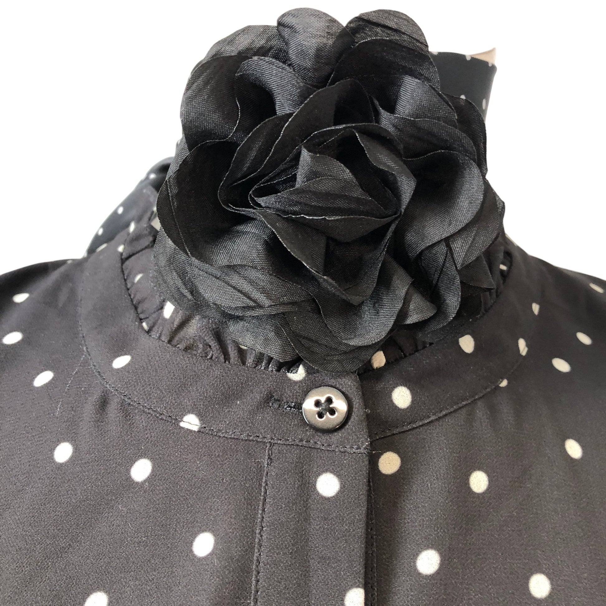 Polka Dot Blouse UK12 Women's Sheer Long Sleeve Black Top with Scarf