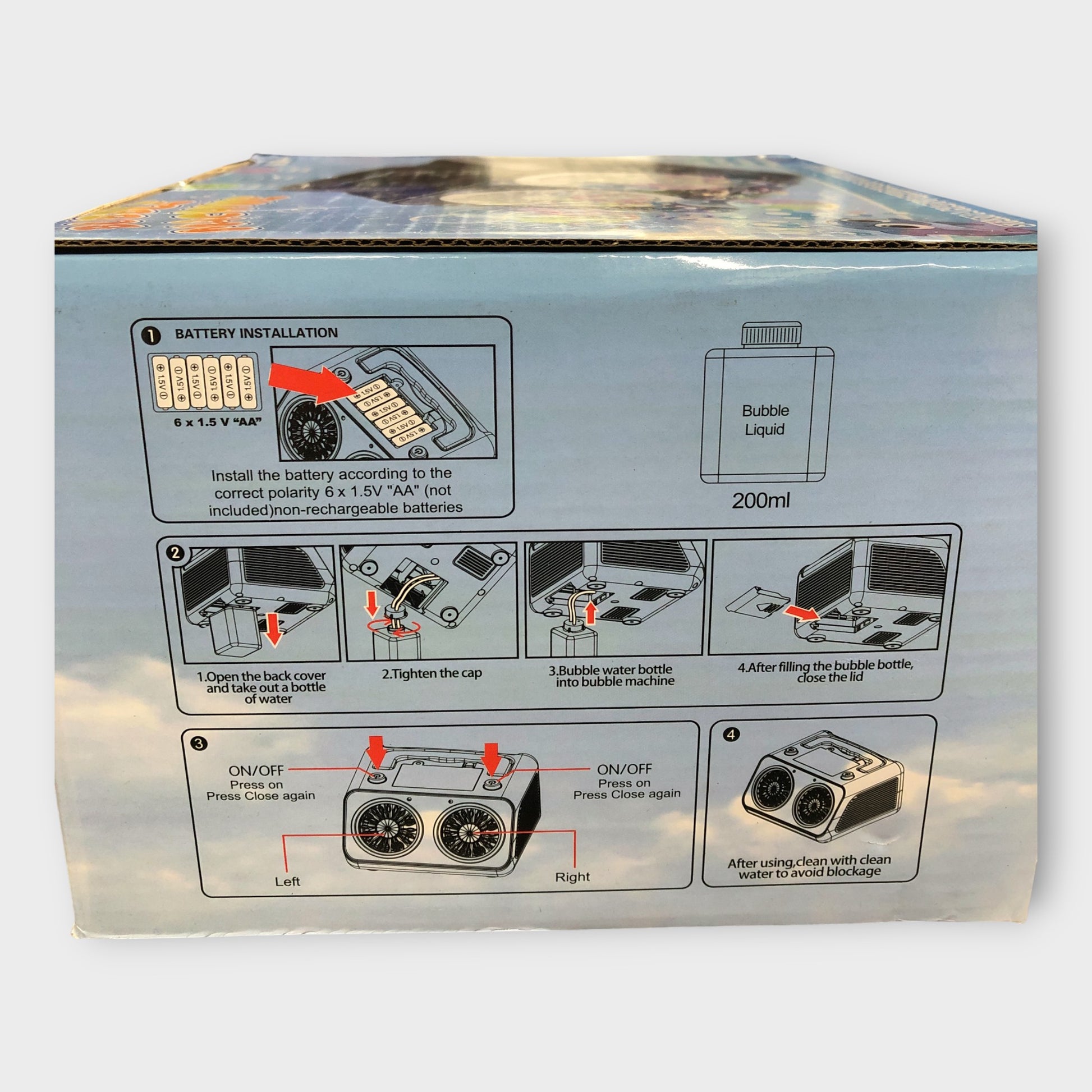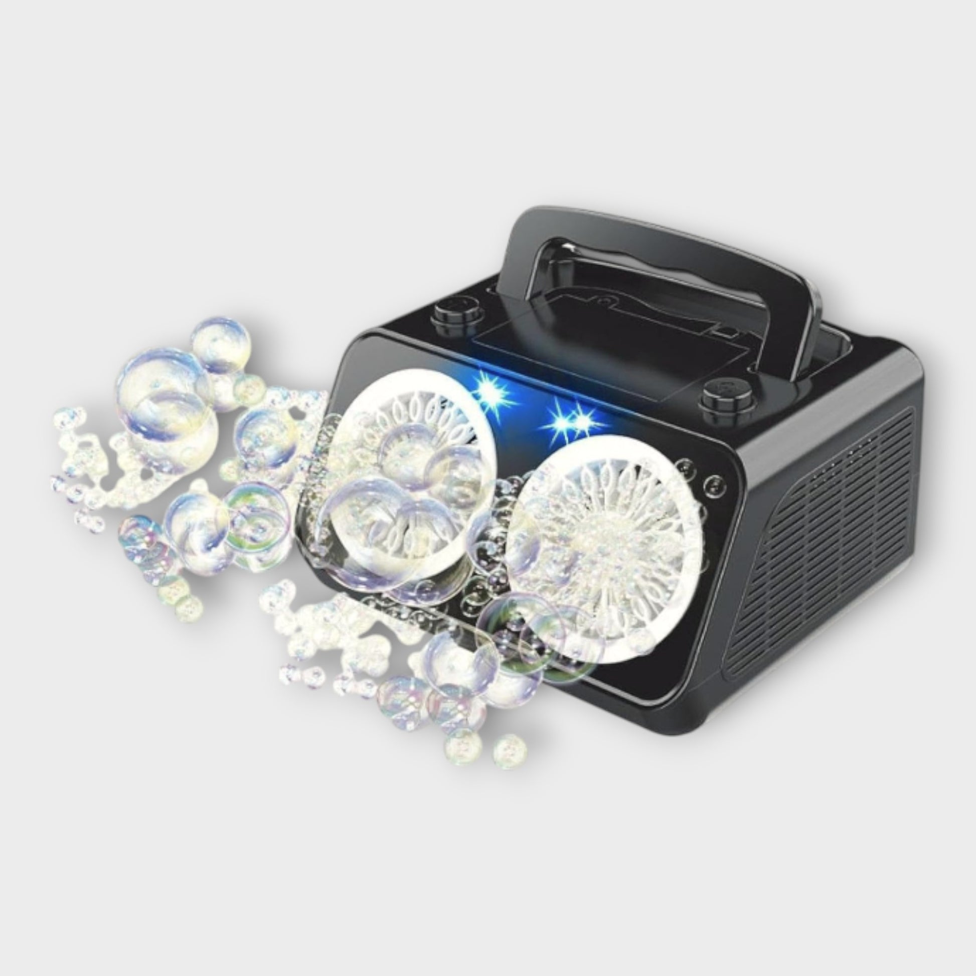 This portable bubble machine operates on six 1.5V AA batteries and features a 200ml fluid capacity with a 40-hole bubble output for continuous fun. Designed with a convenient handle for effortless transport, it includes a bubble concentrate pack and is compatible with standard bubble liquid. Suitable for children aged three and above, it offers an engaging and elegant addition to any celebration.