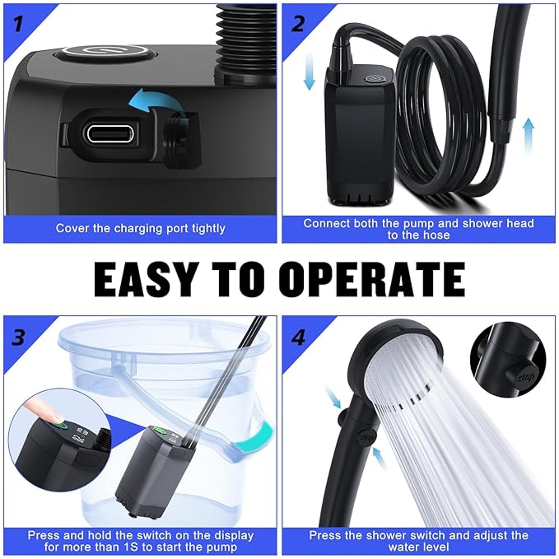 Portable Shower Rechargeable Black With Digital Display Adjustable Water Modes