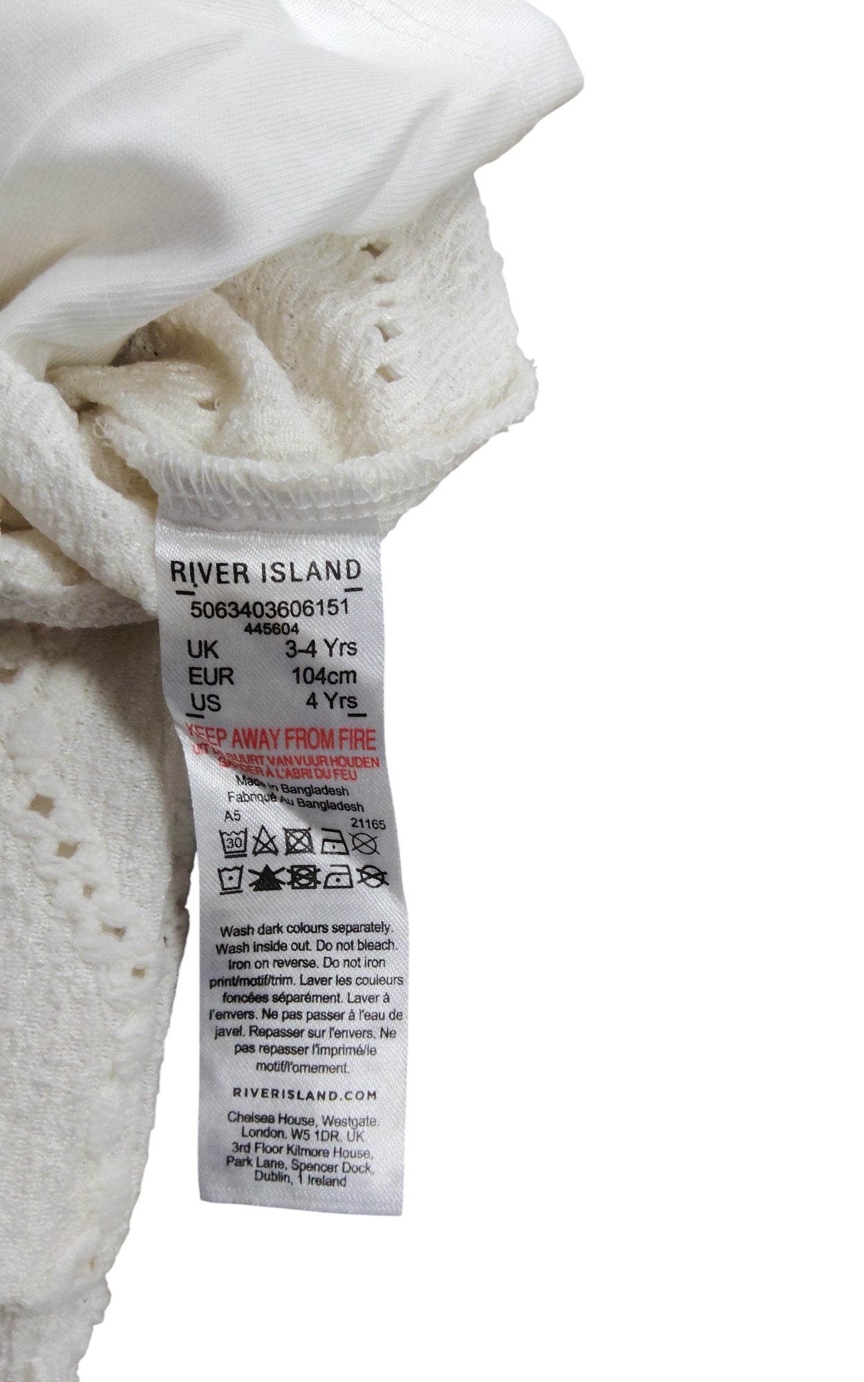 River Island Baby Girls White Romper 3-4 Years Cotton Eyelet Lace Detail