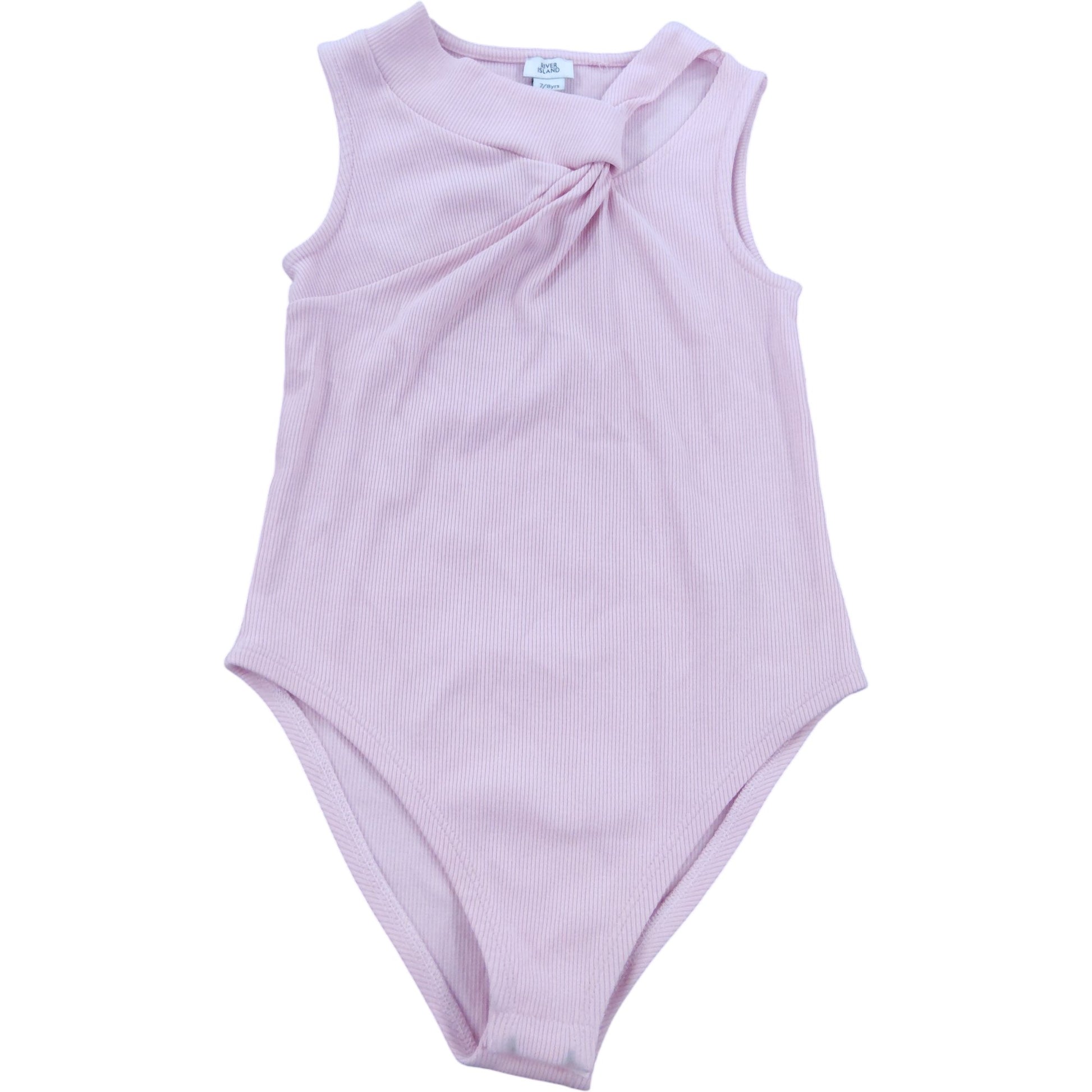River Island Baby Pink Ribbed Bodysuit Size 7-8 Years Girls Sleeveless Tops