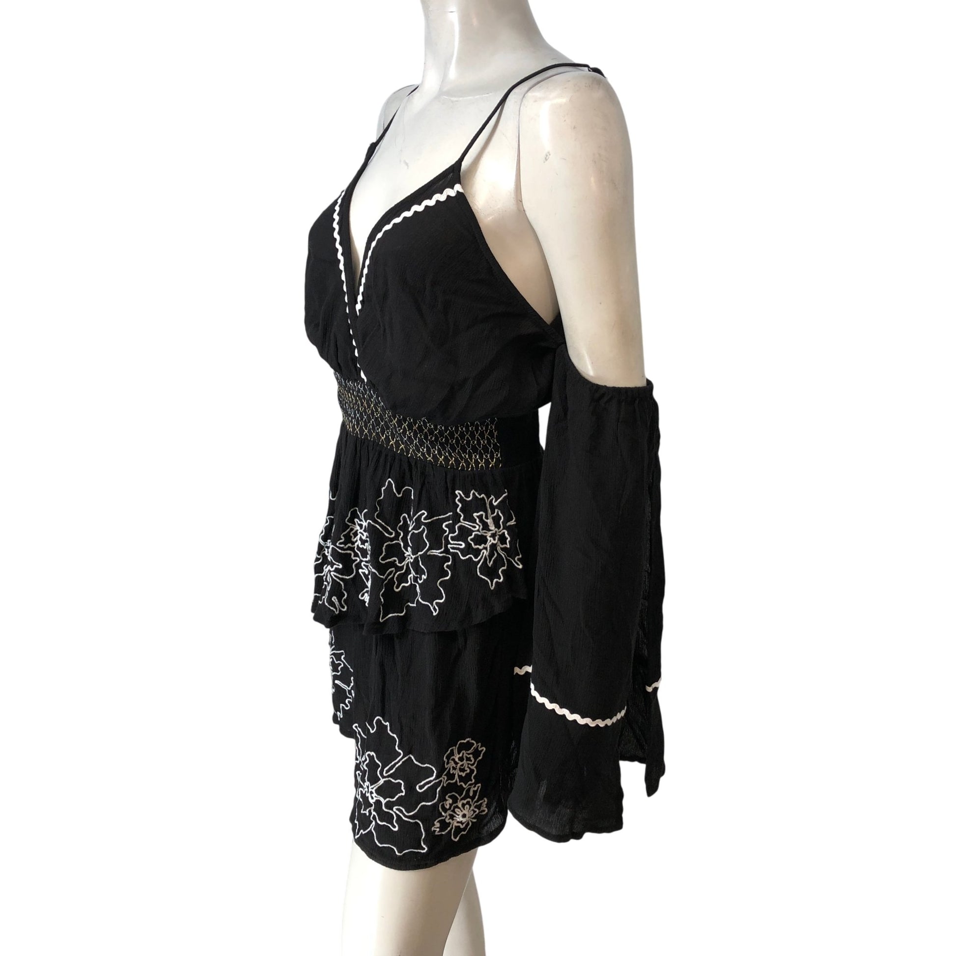 River Island Black Cold Shoulder Playsuit UK S Women's Embroidered Detail
