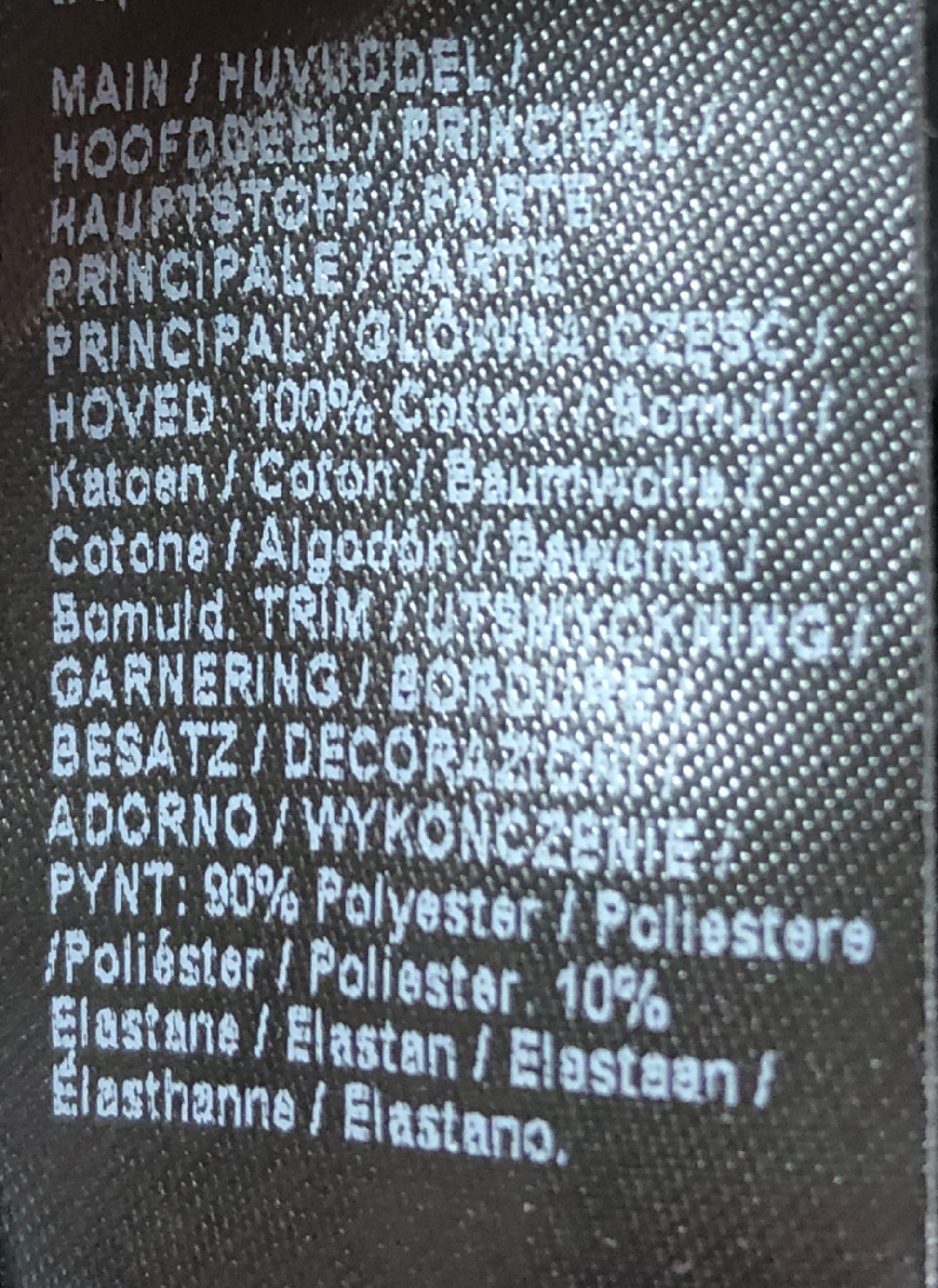 - Material: Main - 100% Cotton; Trims - 90% Polyester, 10% Elastane