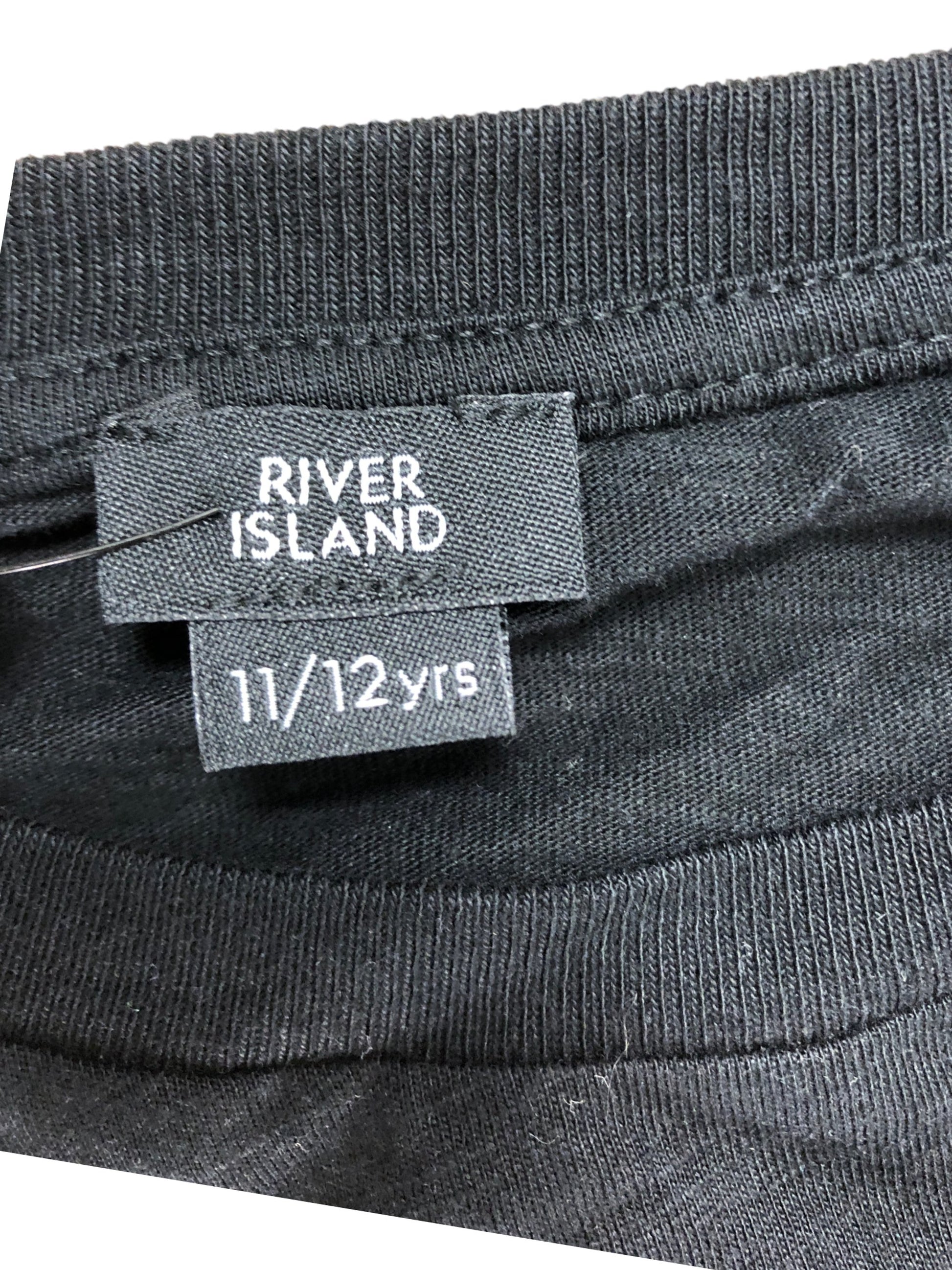 River Island Black Frill Sleeve T-Shirt UK 11 12 Years Girls Fashion Top