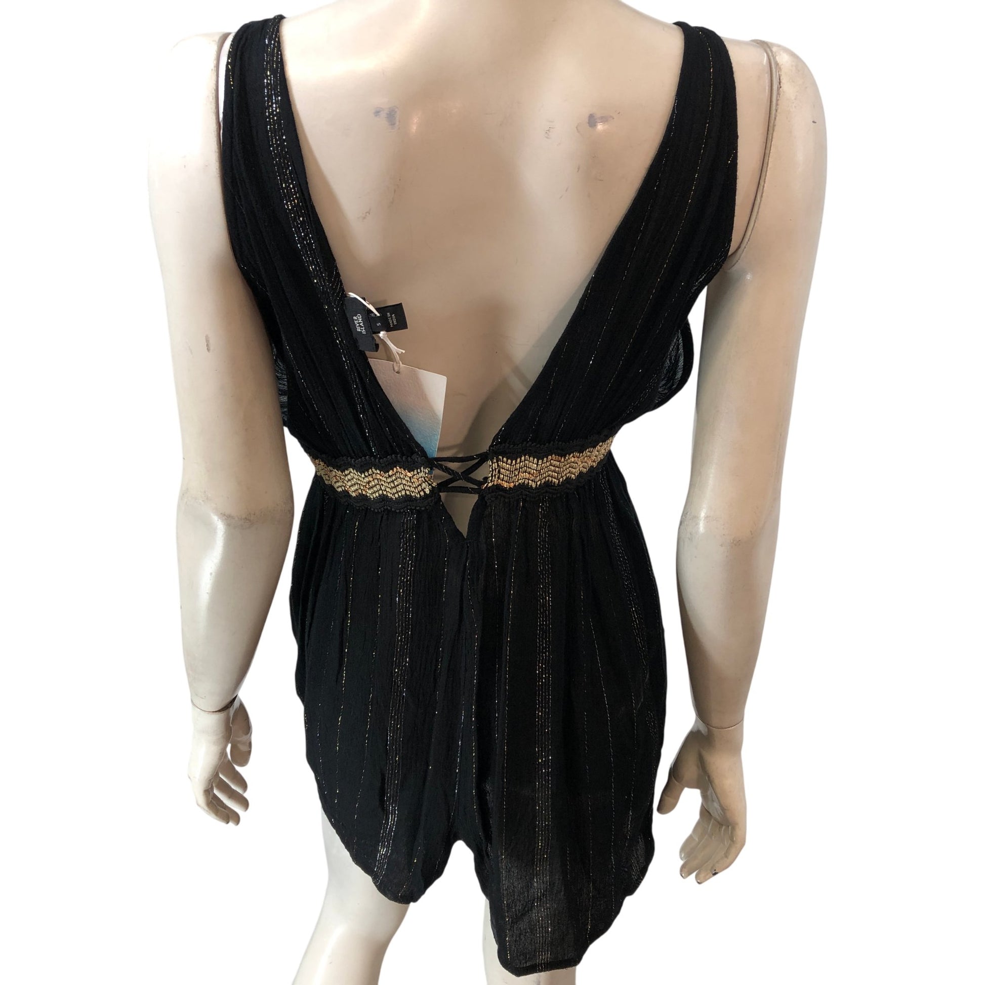 River Island Black S Resort Playsuit Women's Plunge Neck Casual Style Beautiful