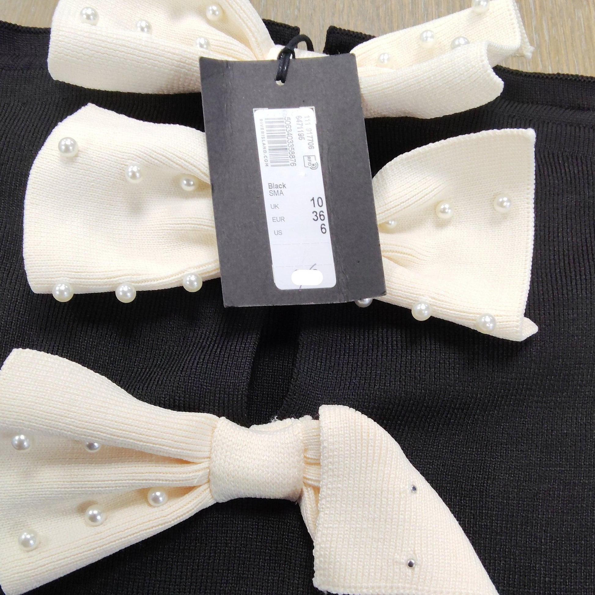 River Island Bow Detail Bodycon Dress UK10 Women's Black Sleeveless Elegant