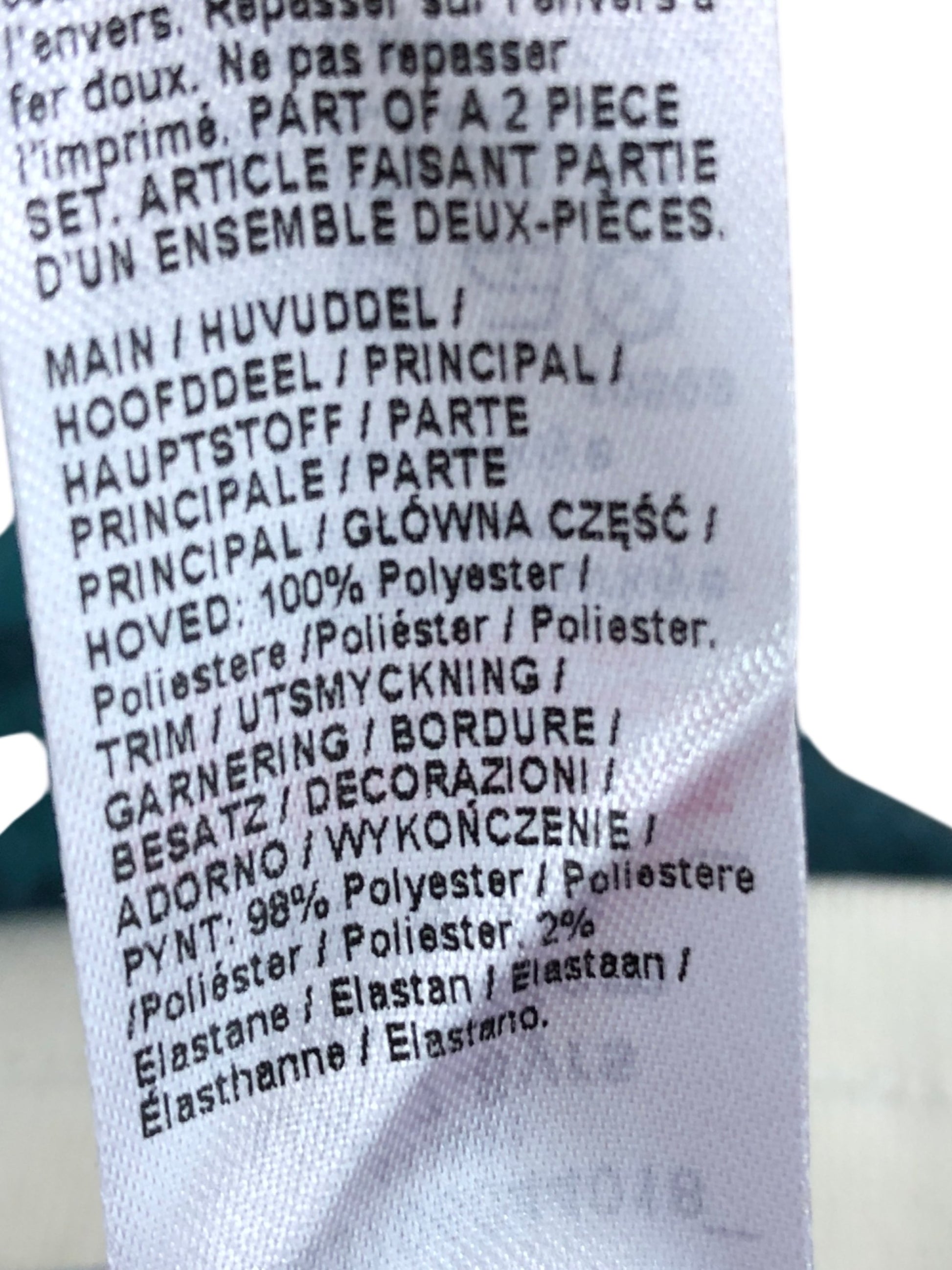 100% Polyester (Main), 98% Polyester, 2% Elastane (Trim)
