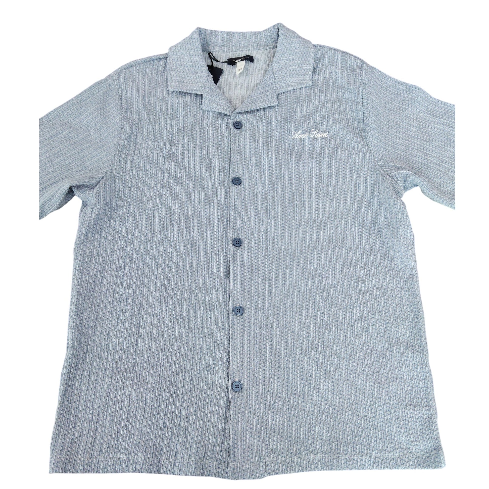 River Island Casual Shirt M Men's Short Sleeve Textured Cotton Blue