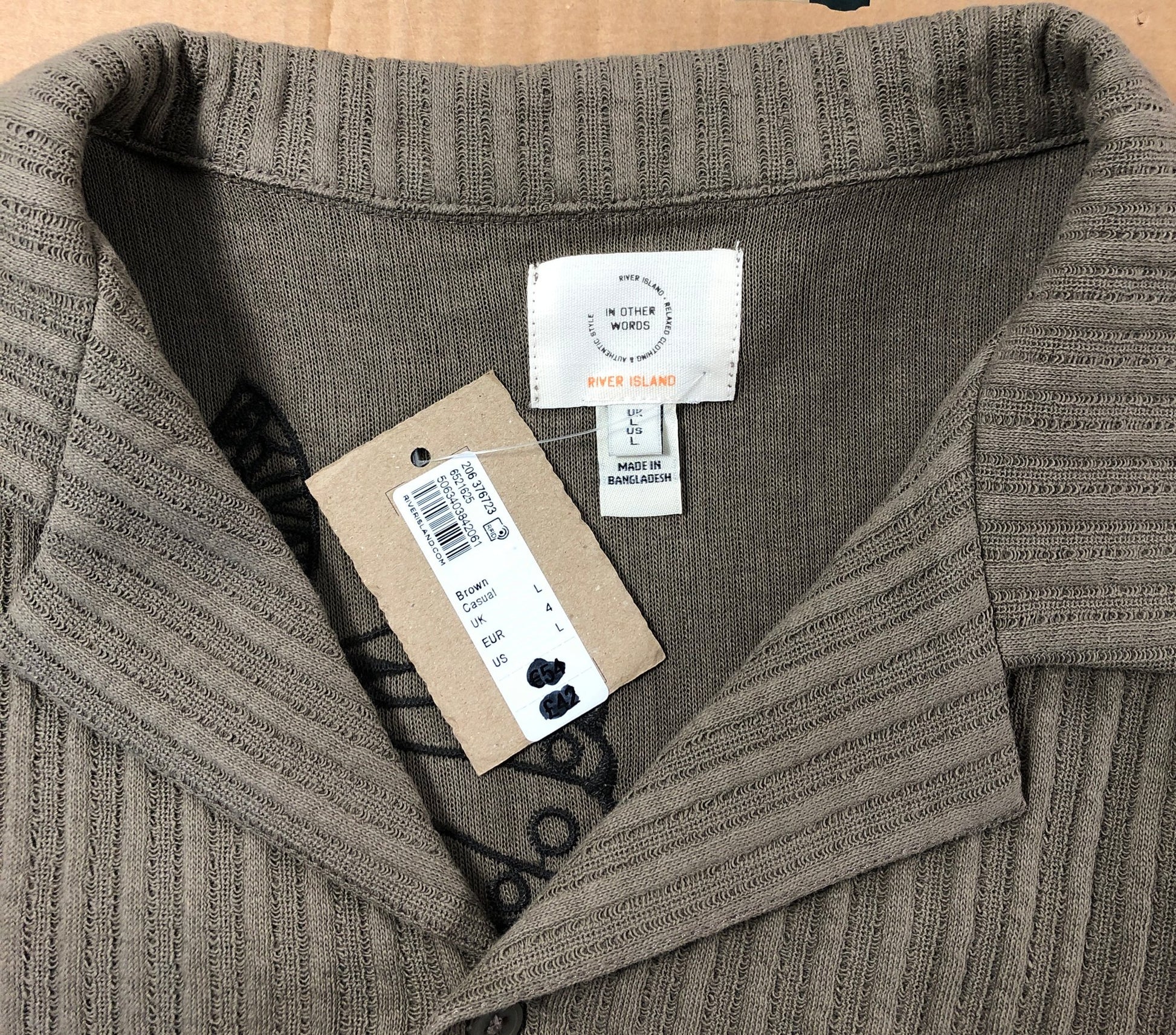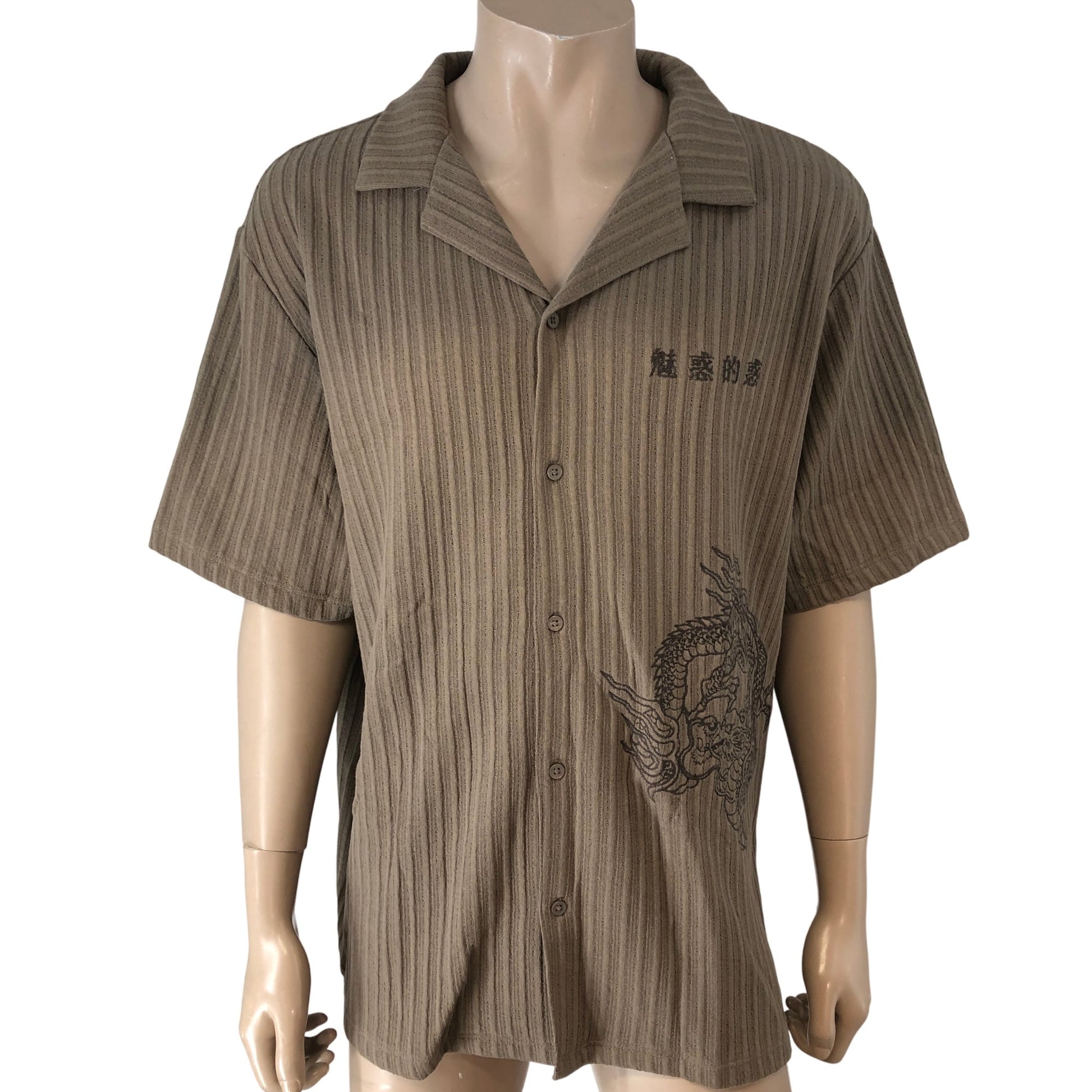 RIVER ISLAND Casual Shirt Size L Men's Brown Dragon Print Short Sleeve Top