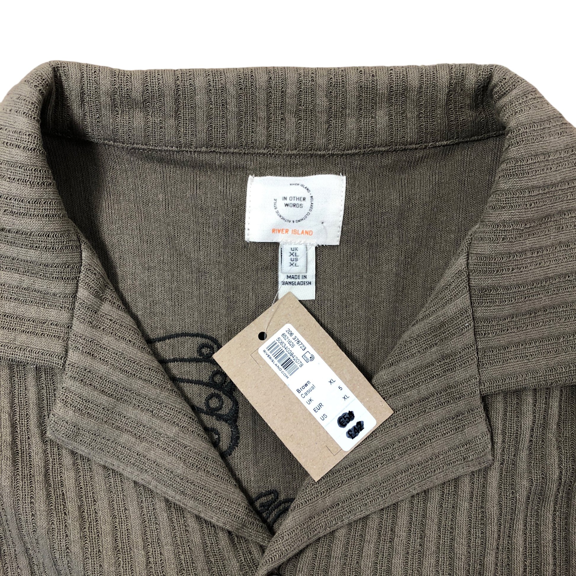 RIVER ISLAND Casual Shirt XL Men's Brown Striped Short Sleeve Dragon Design
