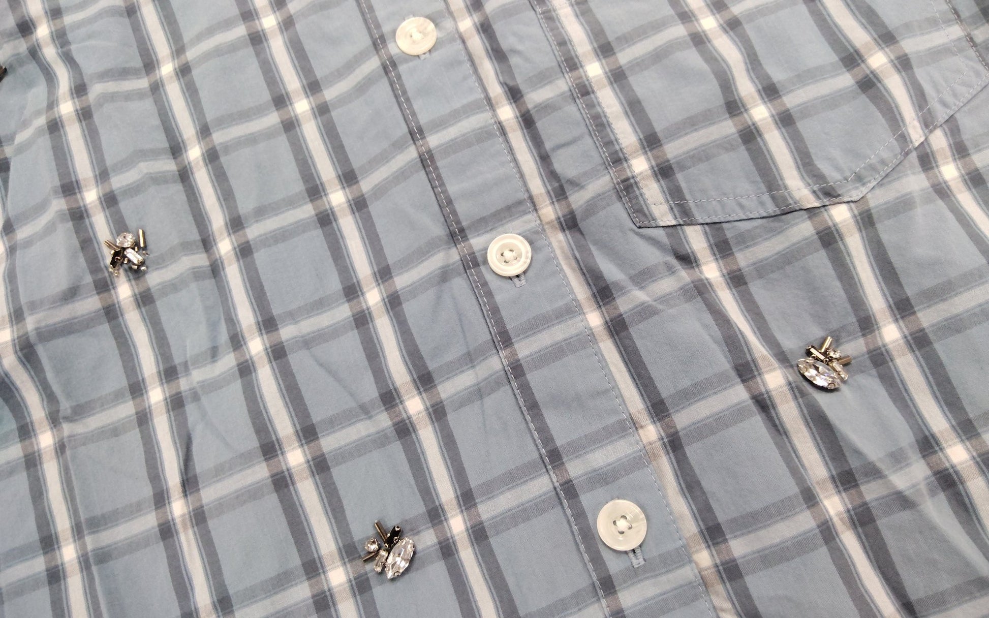 River Island Checked Blue Shirt Women Size 12 Embellished Long Sleeve