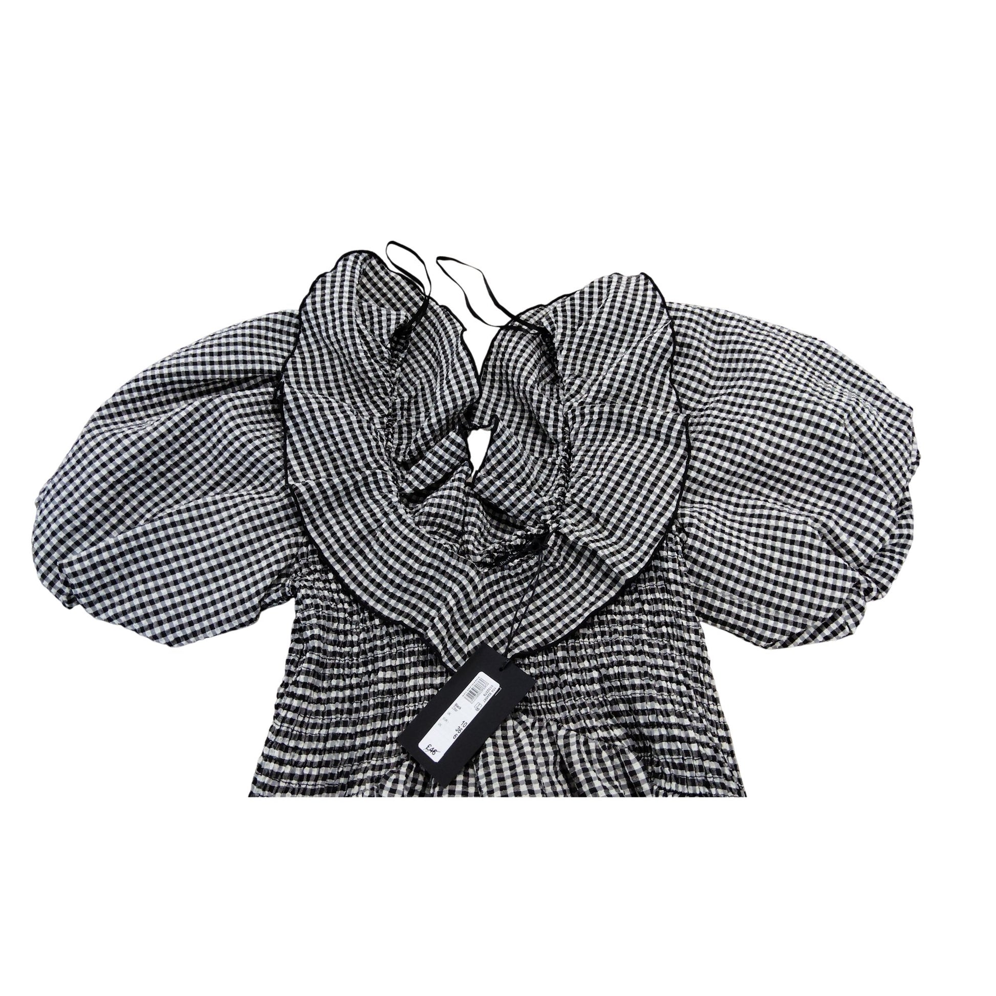 River Island Cocktail Gingham Dress Black White Smocked Puff Sleeve UK 8 Women's