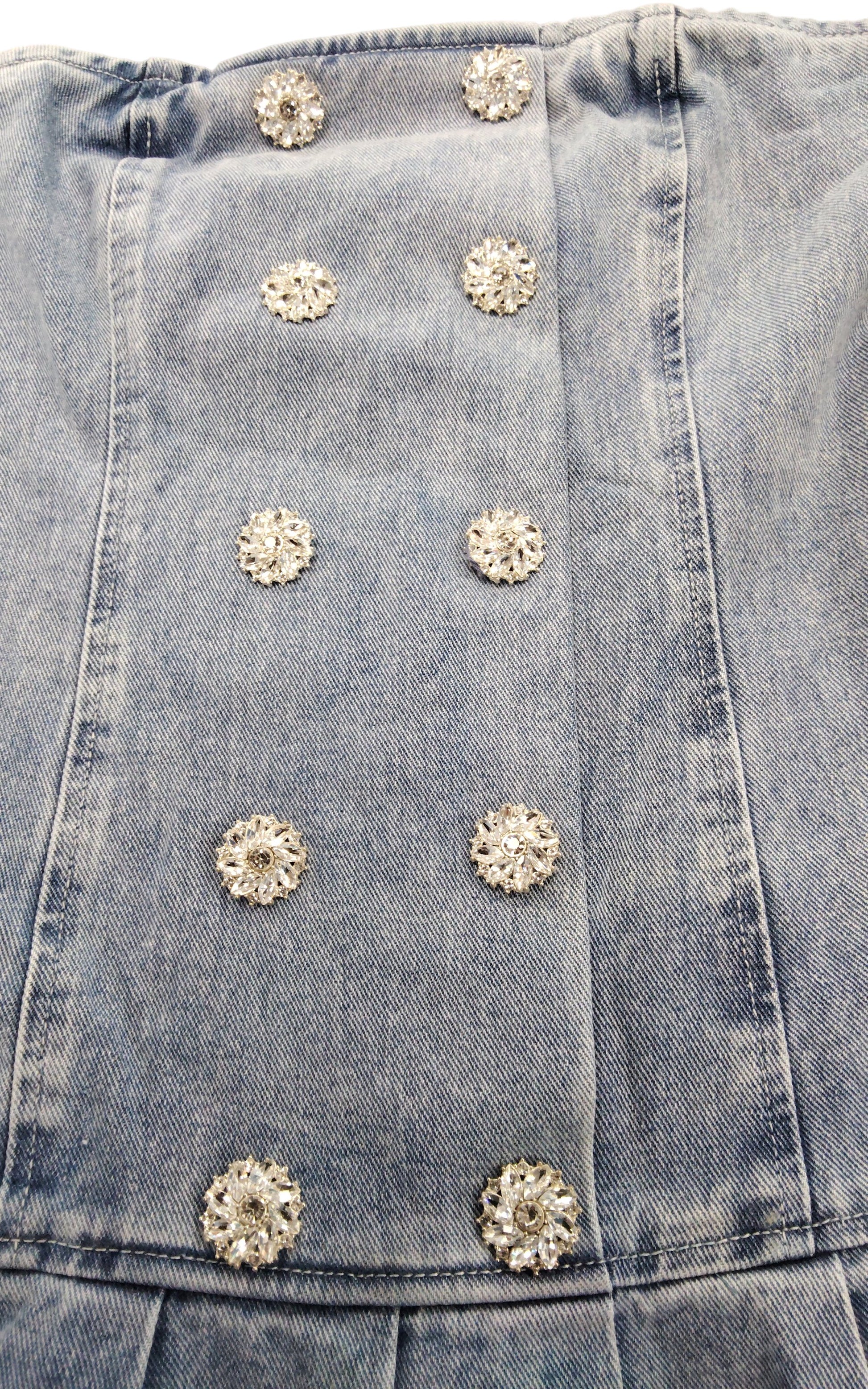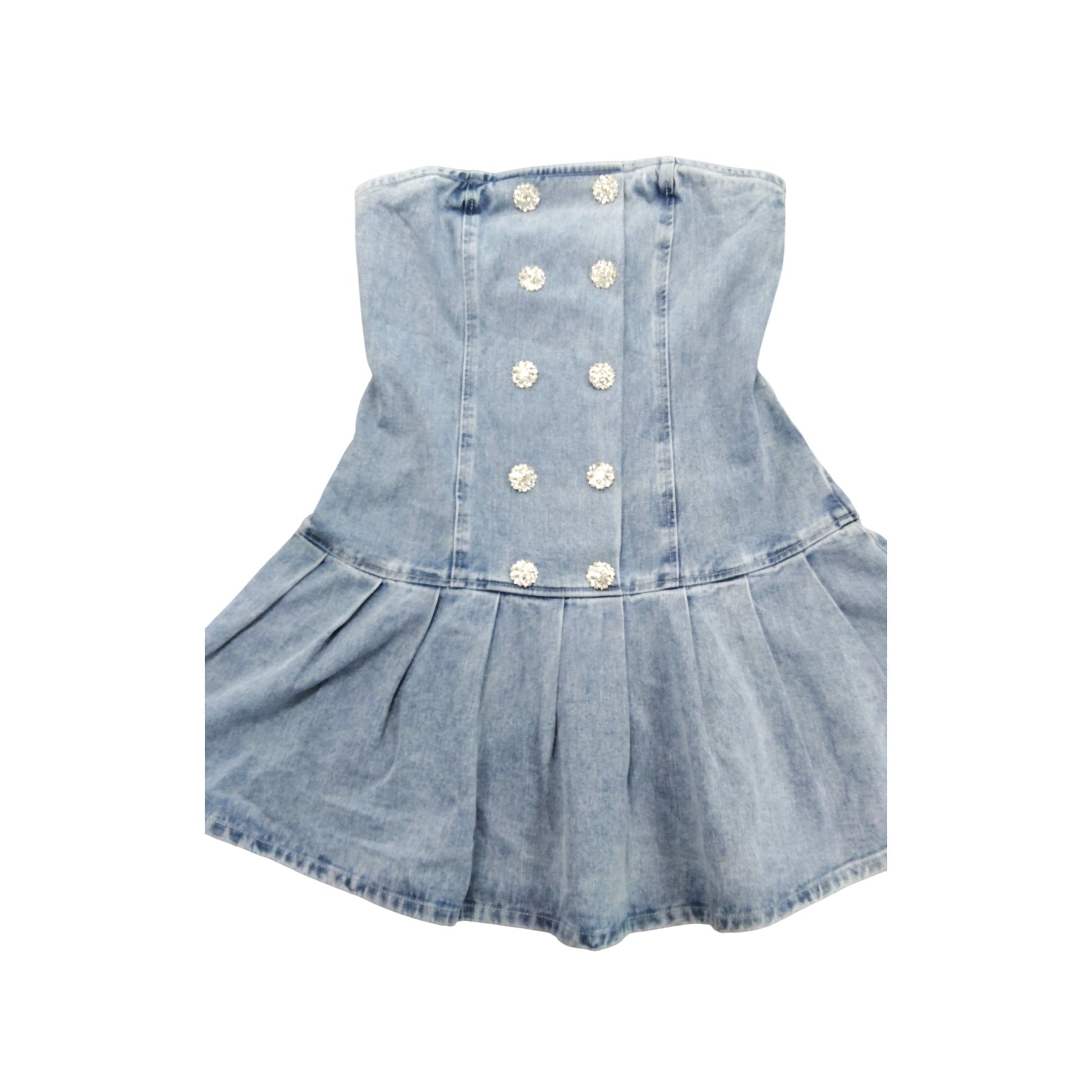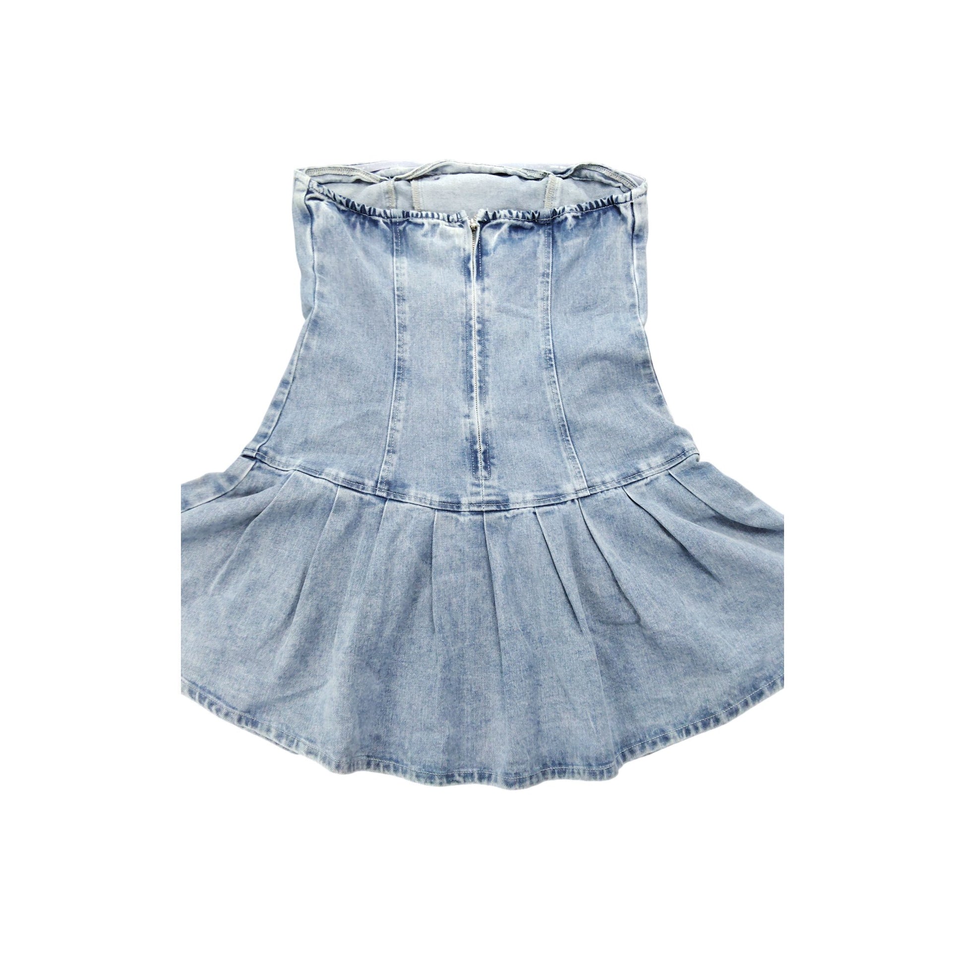 River Island Denim Dress UK12 Women's Sleeveless Skater Style Light Blue