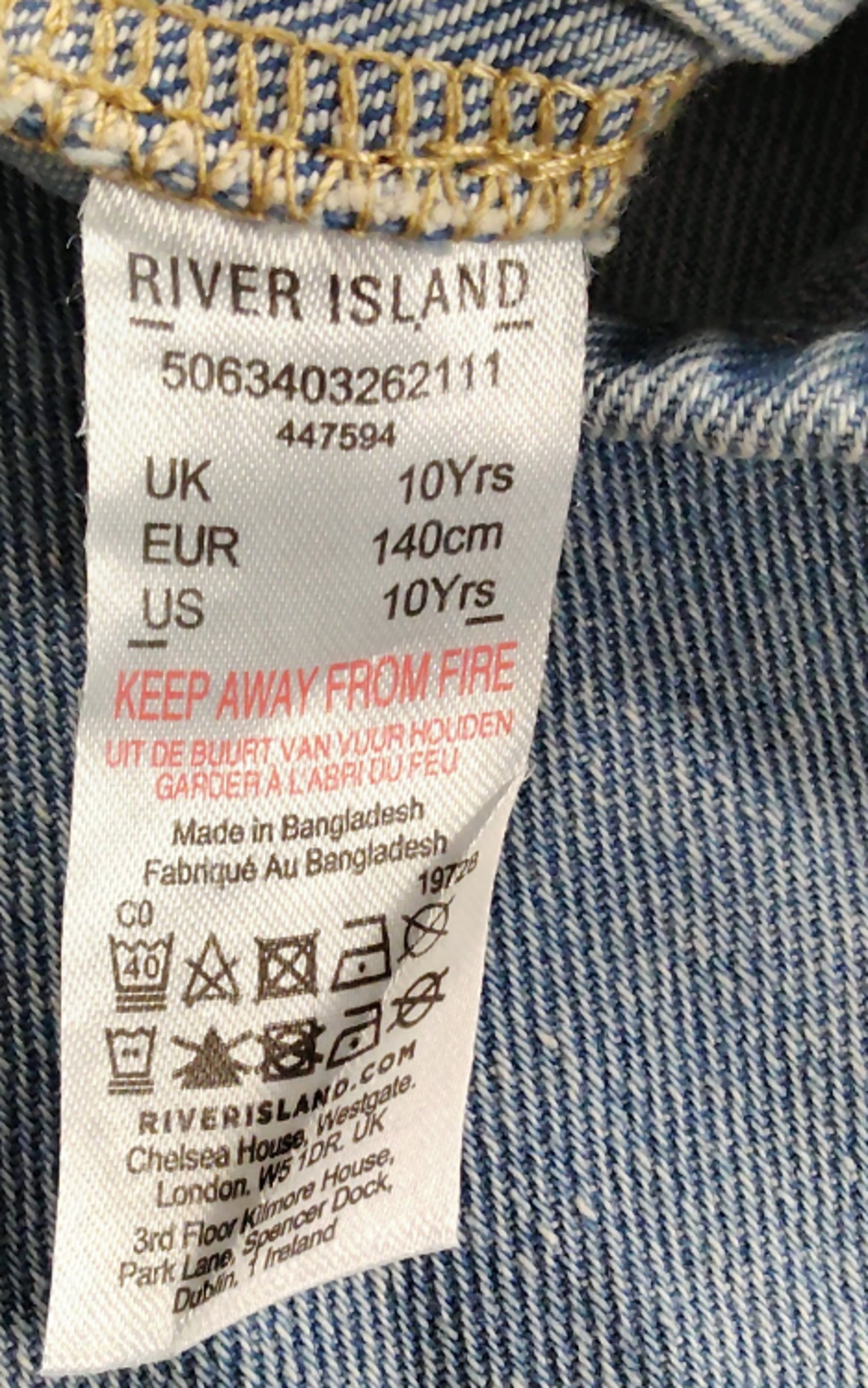 River Island Denim Sleeveless Top 10Yrs Women's Floral Embroidered Blue