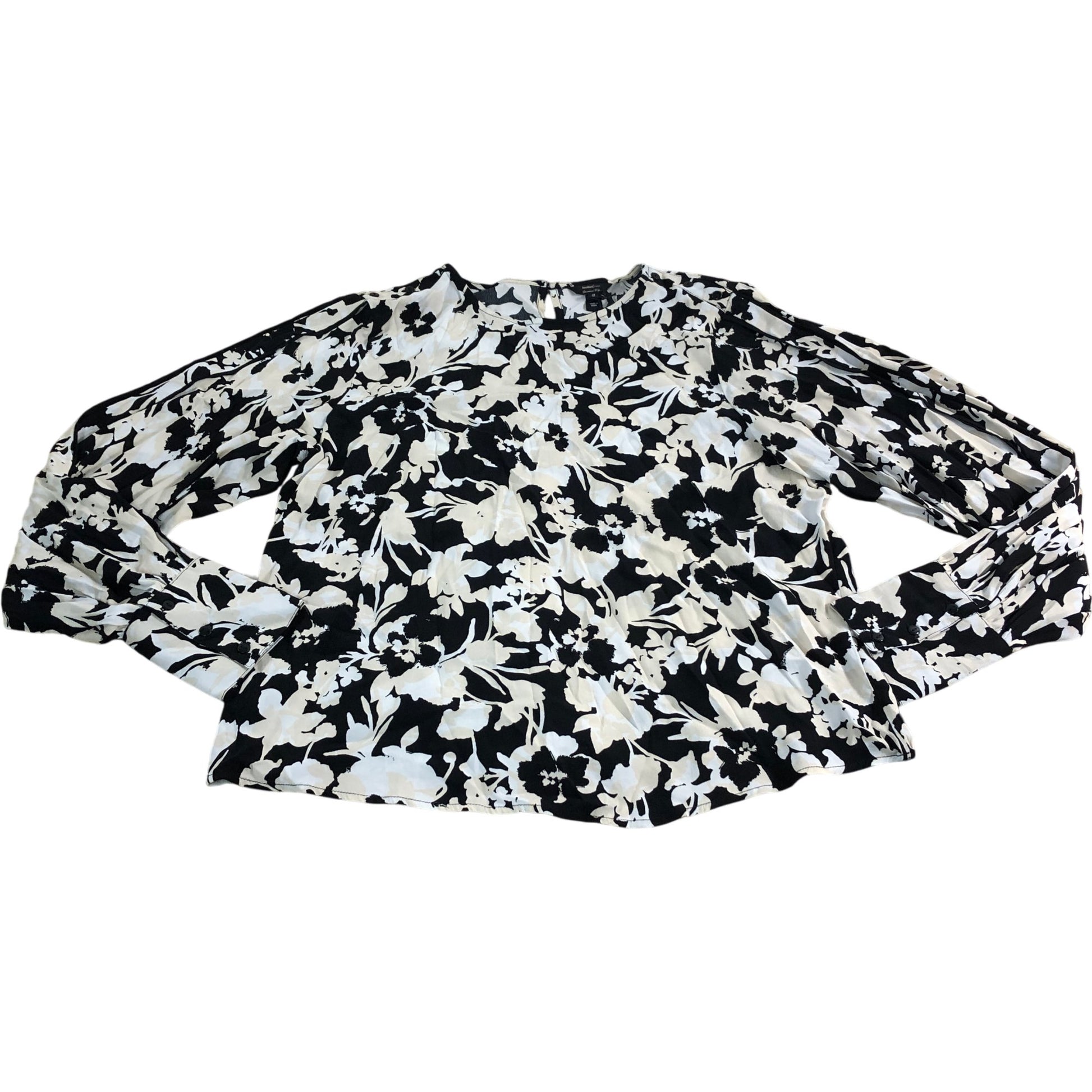 River Island Floral Blouse UK16 Women's Long Sleeve Black White Print