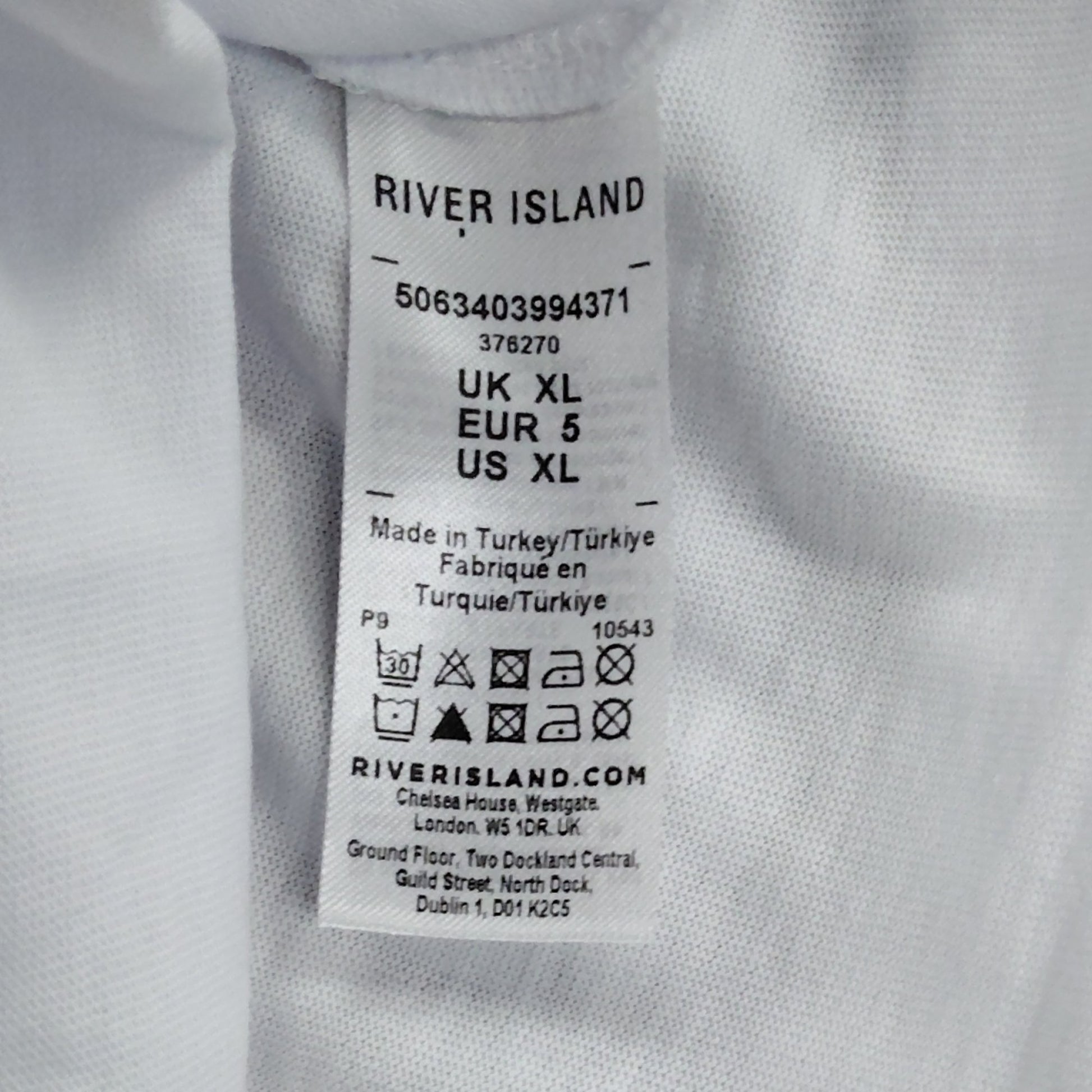 River Island Floral Graphic T-Shirt UK XL Men's White Cotton Short Sleeve