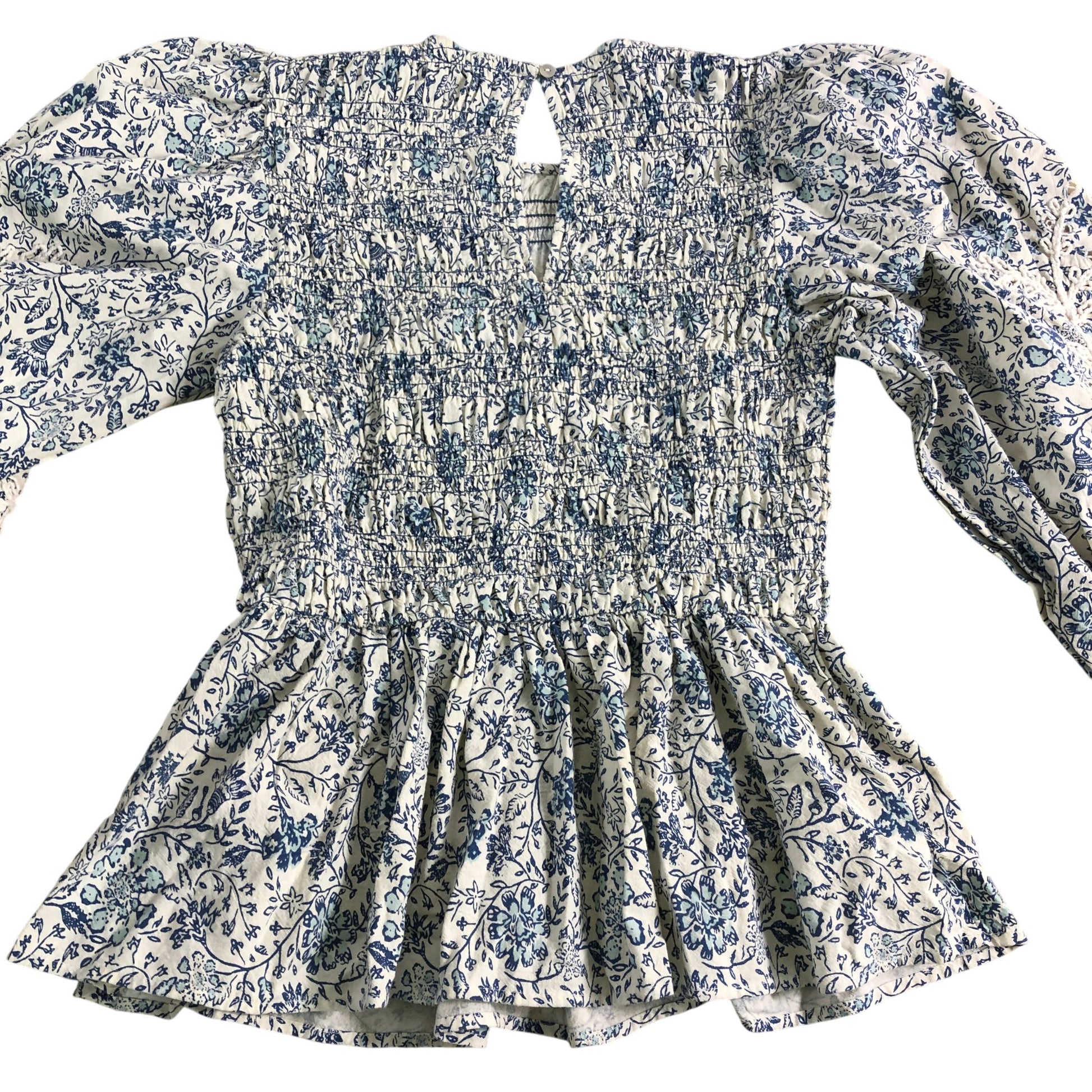 River Island Floral Print Blouse UK8 Women's Long Sleeve Peplum Top Cotton