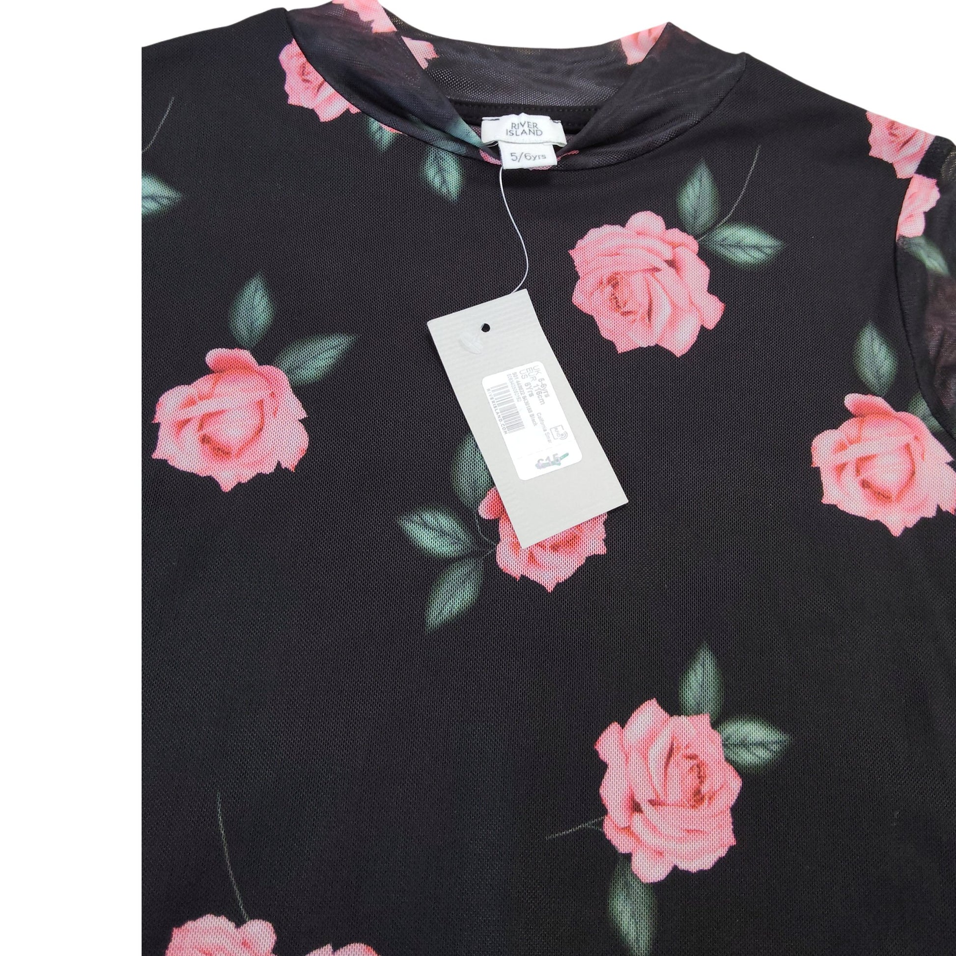 River Island Floral Print Long Sleeve Top Size 5 Years Girls Black Pink