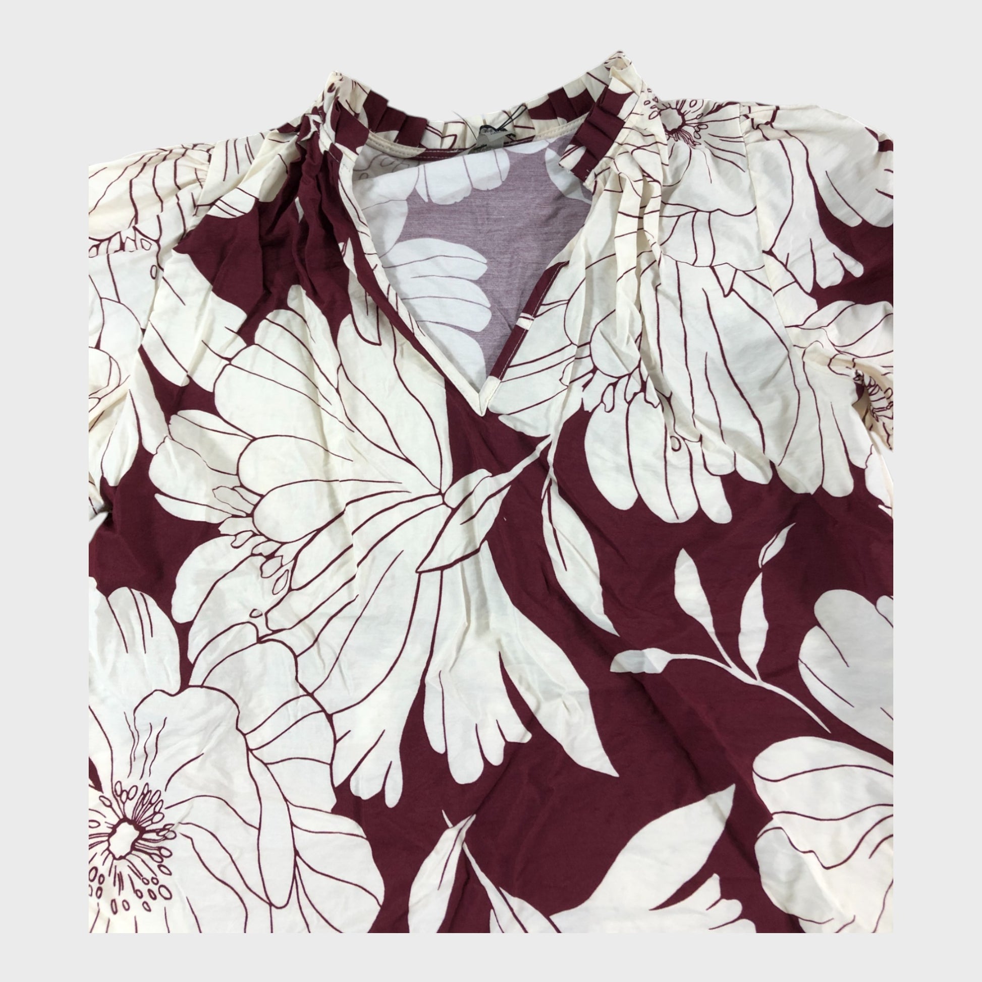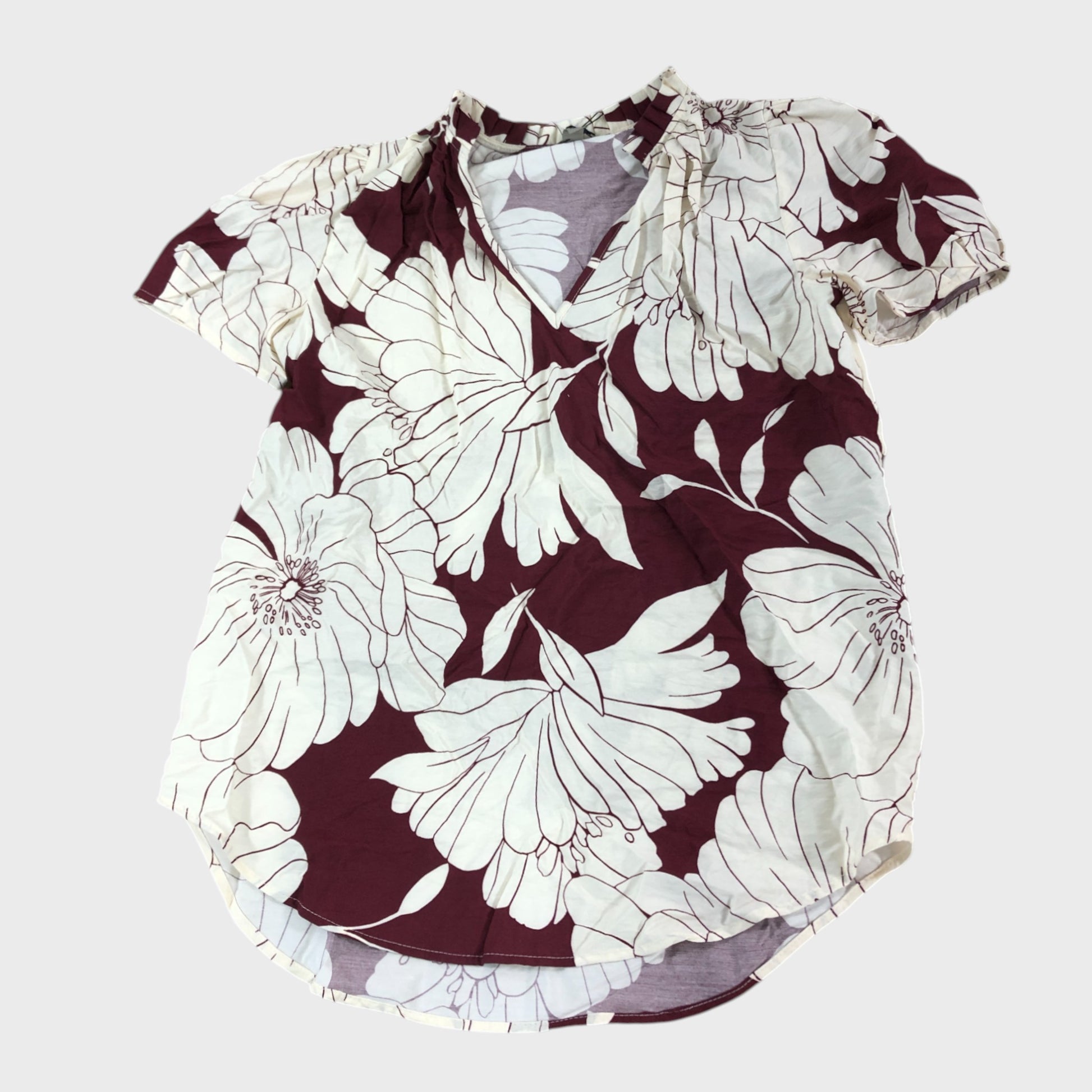River Island Floral Short Sleeve Blouse Women's Red White V-Neck