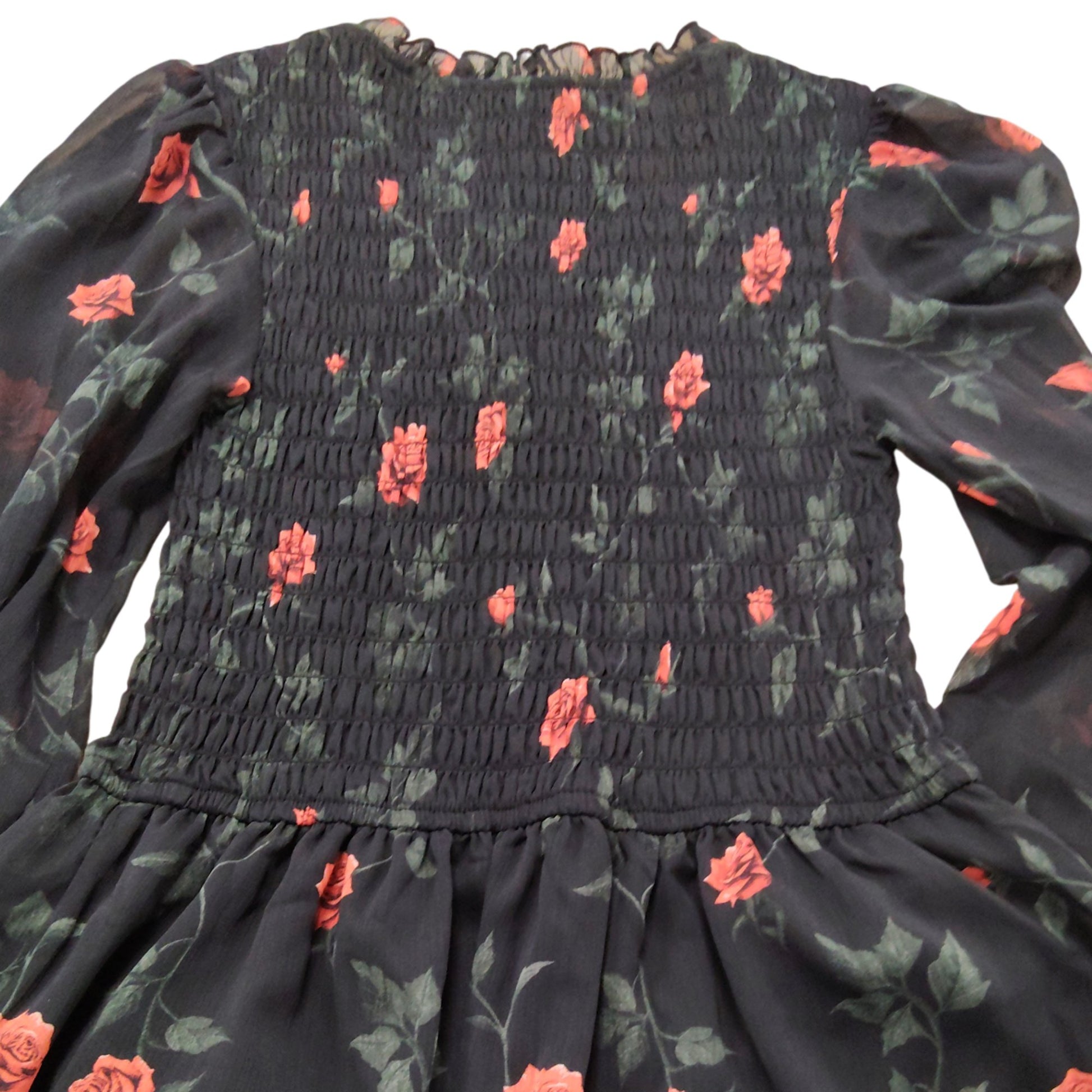 River Island Floral Smock Dress UK6 Women's Long Sleeve Black With Roses
