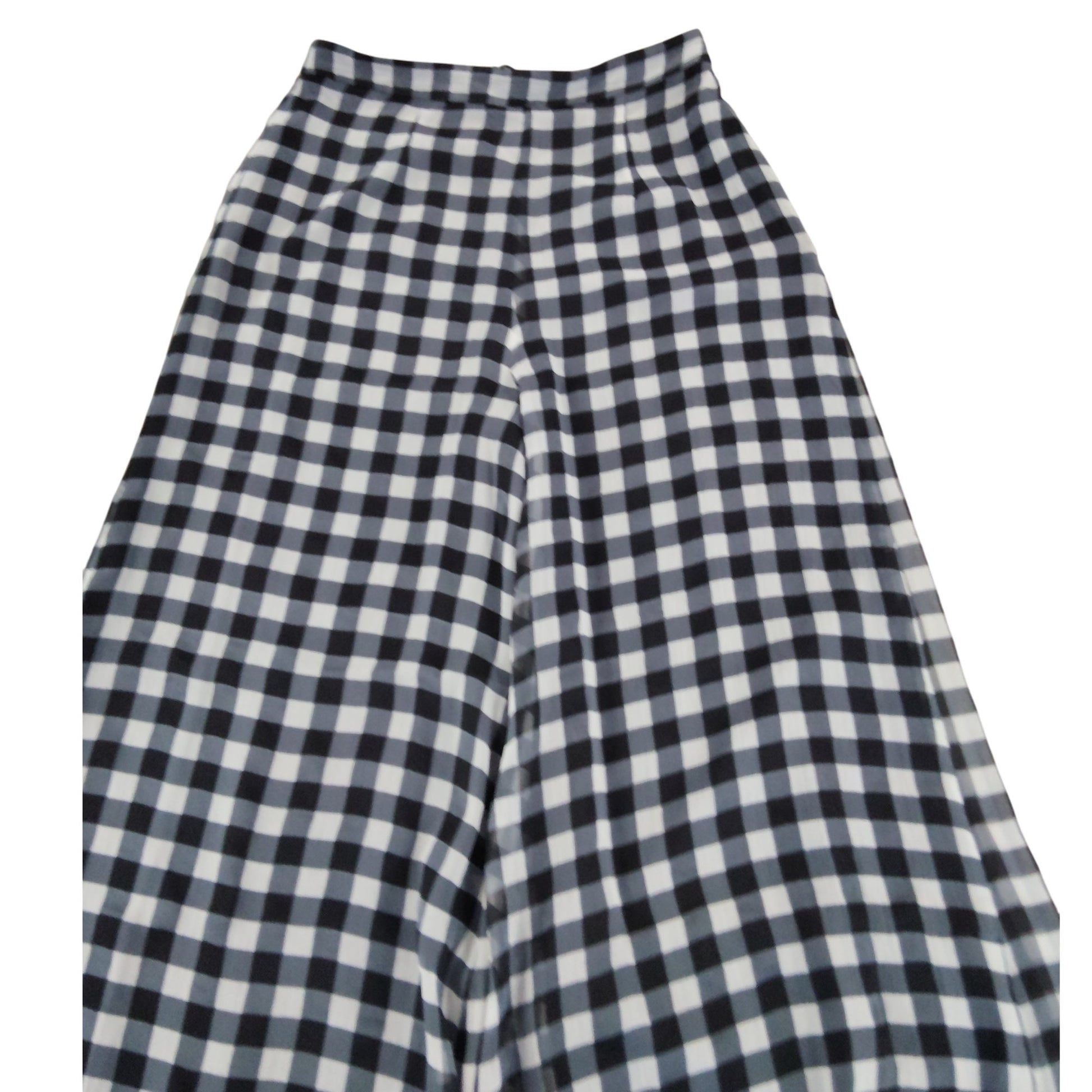 River Island Gingham Check Trousers UK6 Women's High Waisted Wide Leg Black