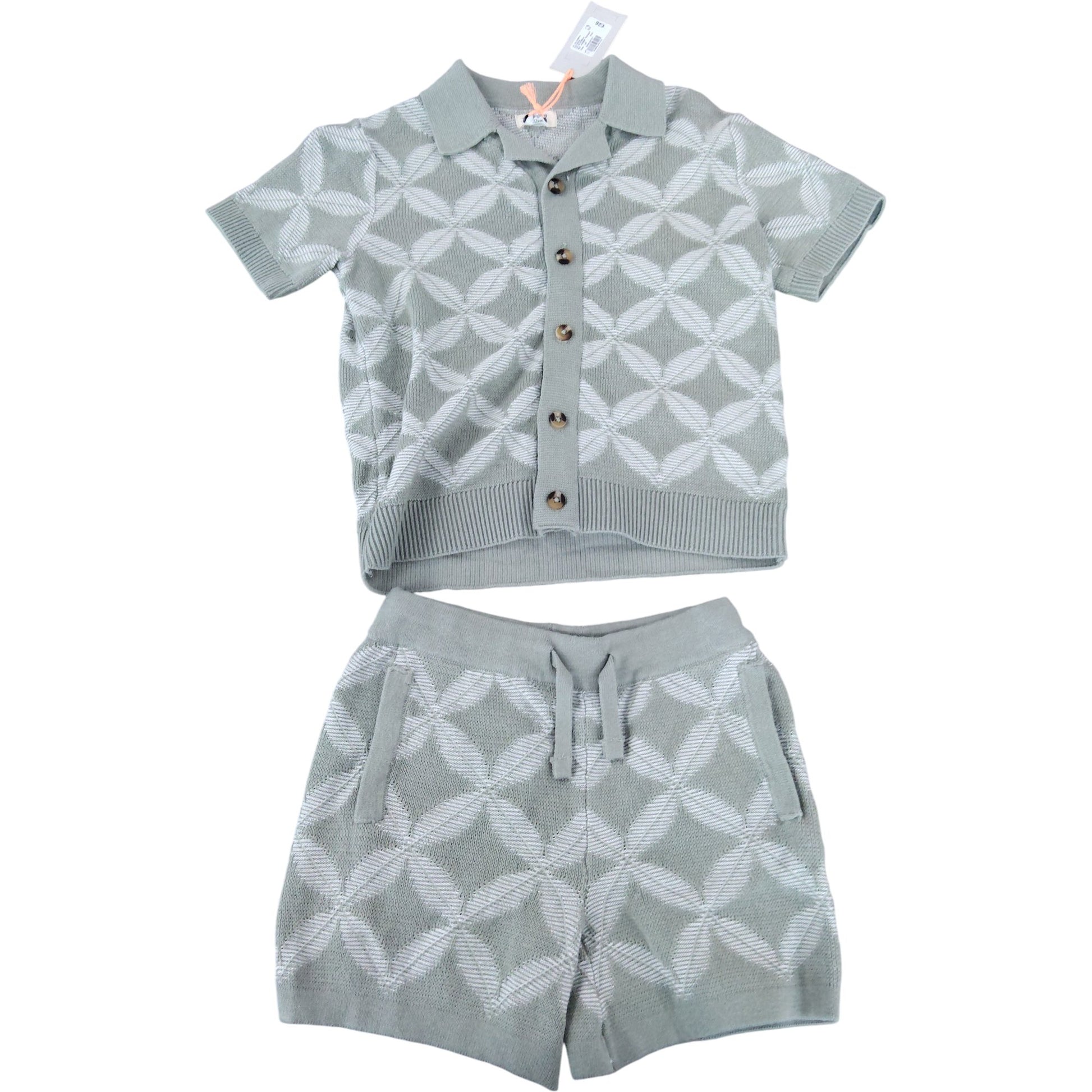 River Island Girls 18-24 Months Set Knitted Top And Shorts Grey Leaf Pattern