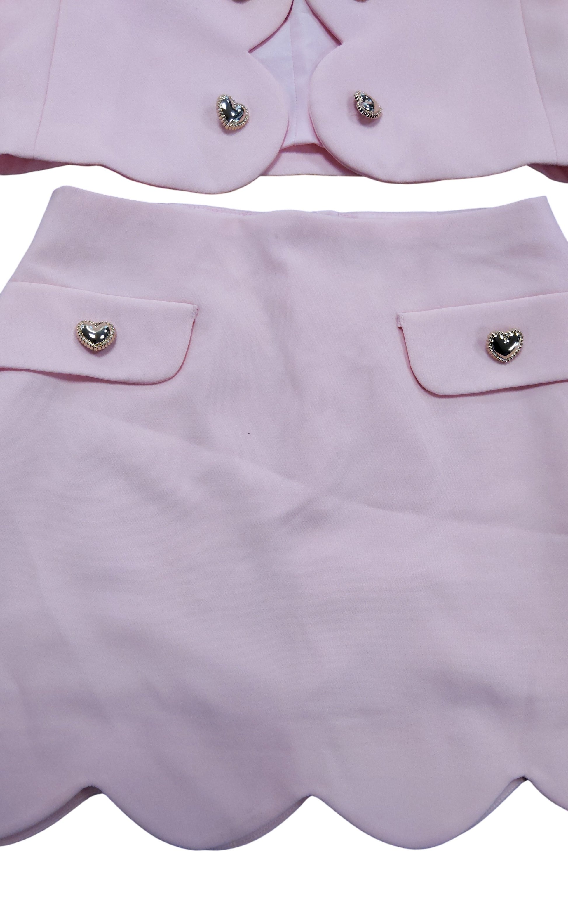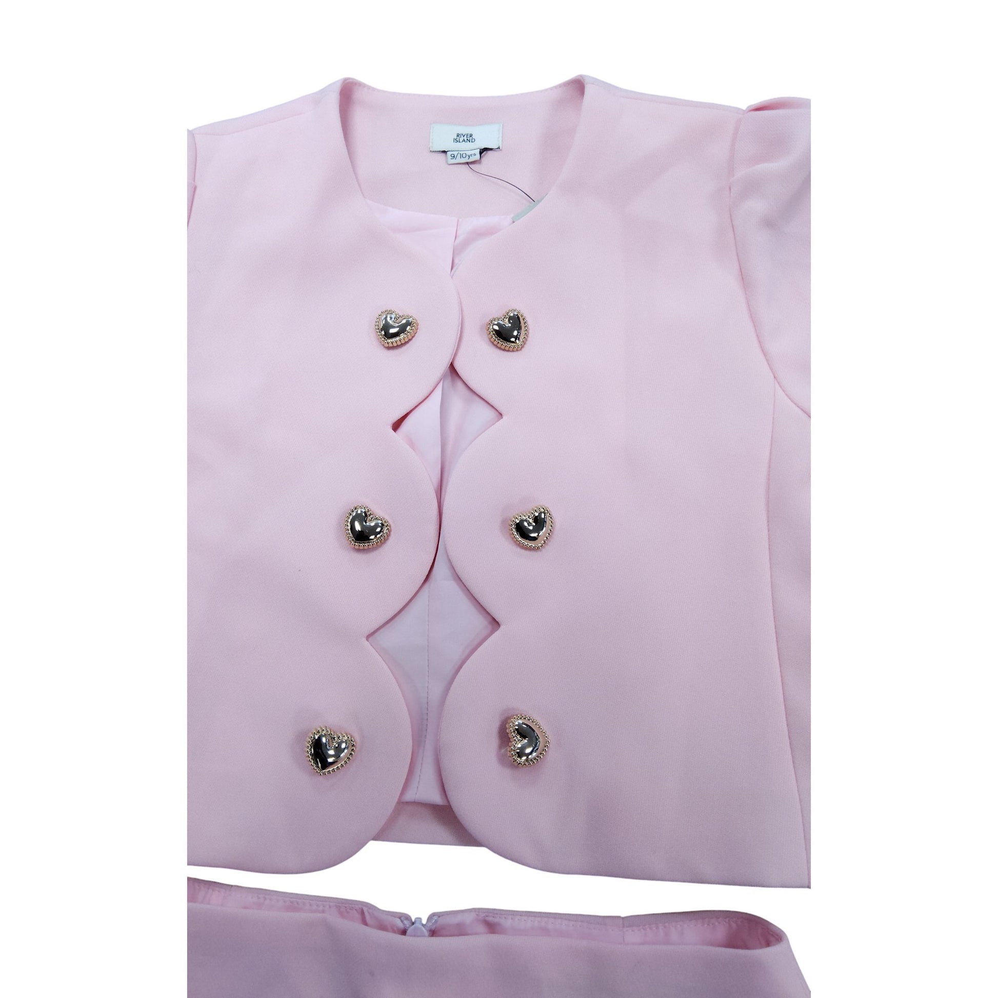 River Island Girls 9-10 Years Pink Scalloped Edge Blazer Skirt Suit Set