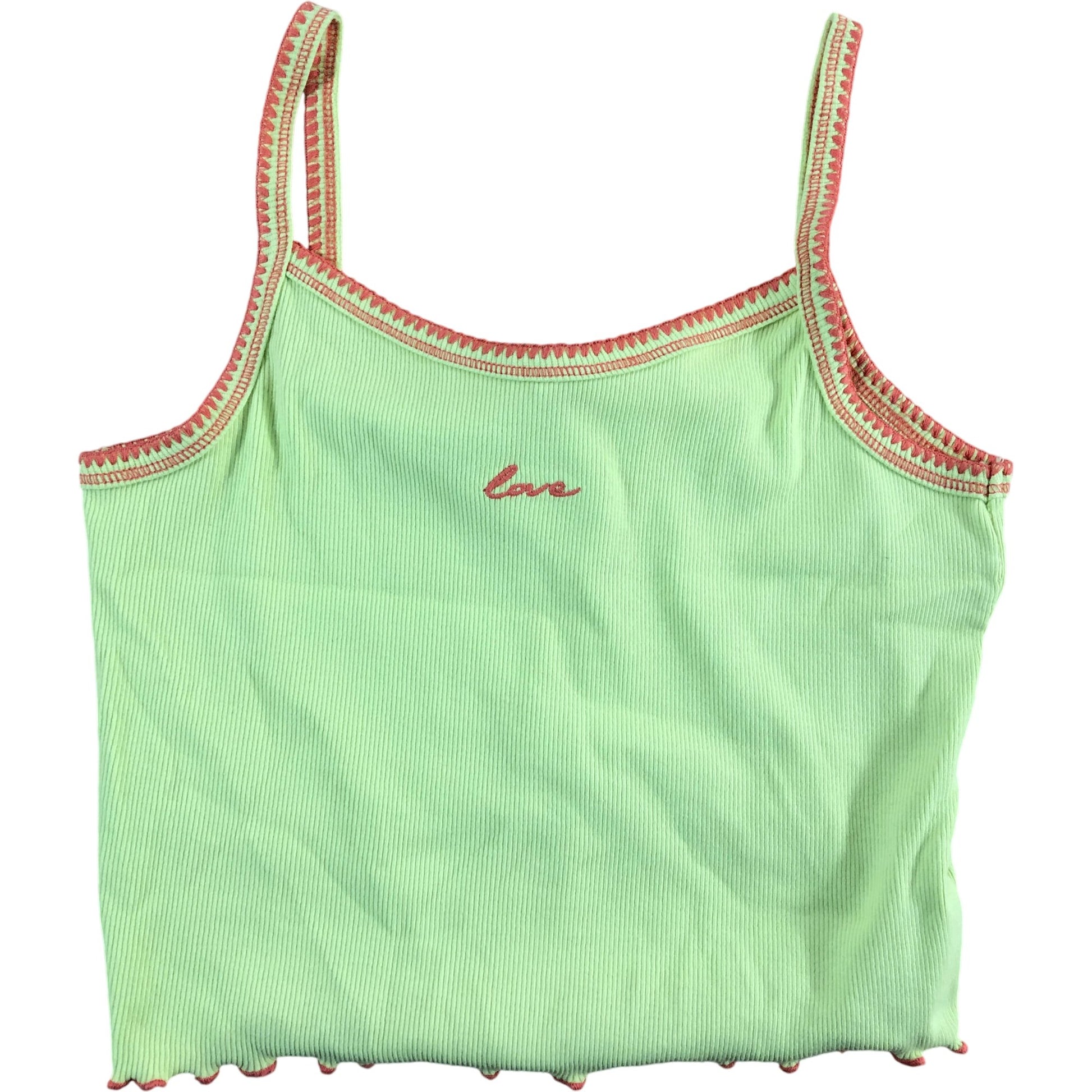 River Island Girls Crop Top Size 11-12 Years Bright Lime Love Embroidery