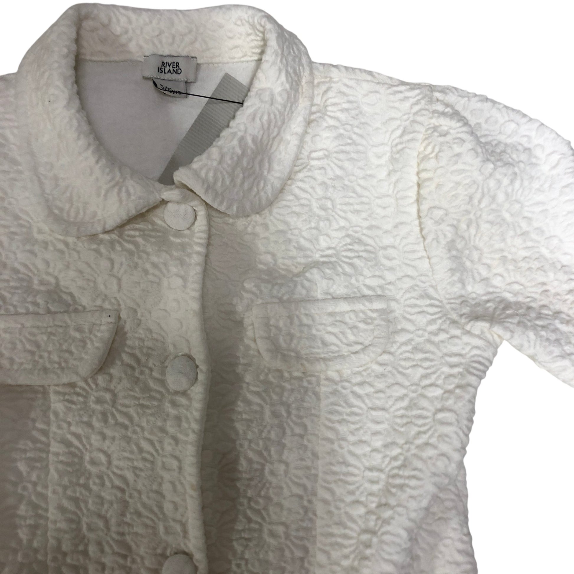 River Island Girls Dress 5-6 Years White Textured Short Sleeve Button Up