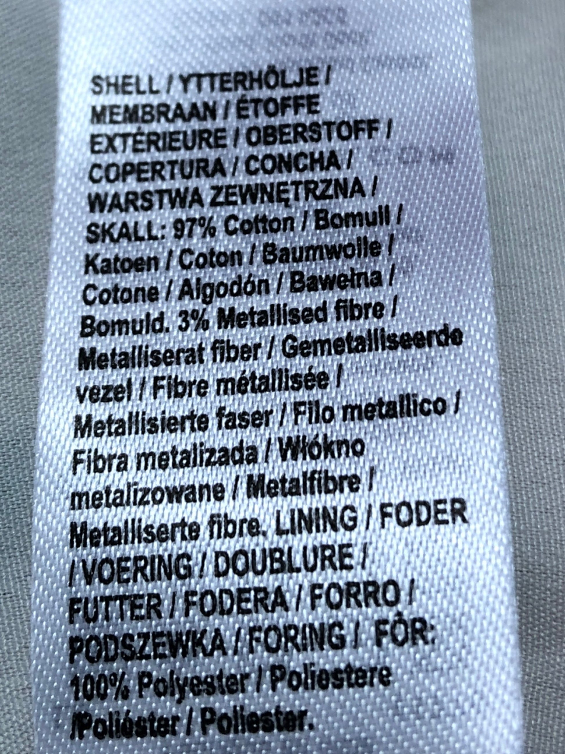 - Fabric: 97% Cotton, 3% Metalisied Fibre