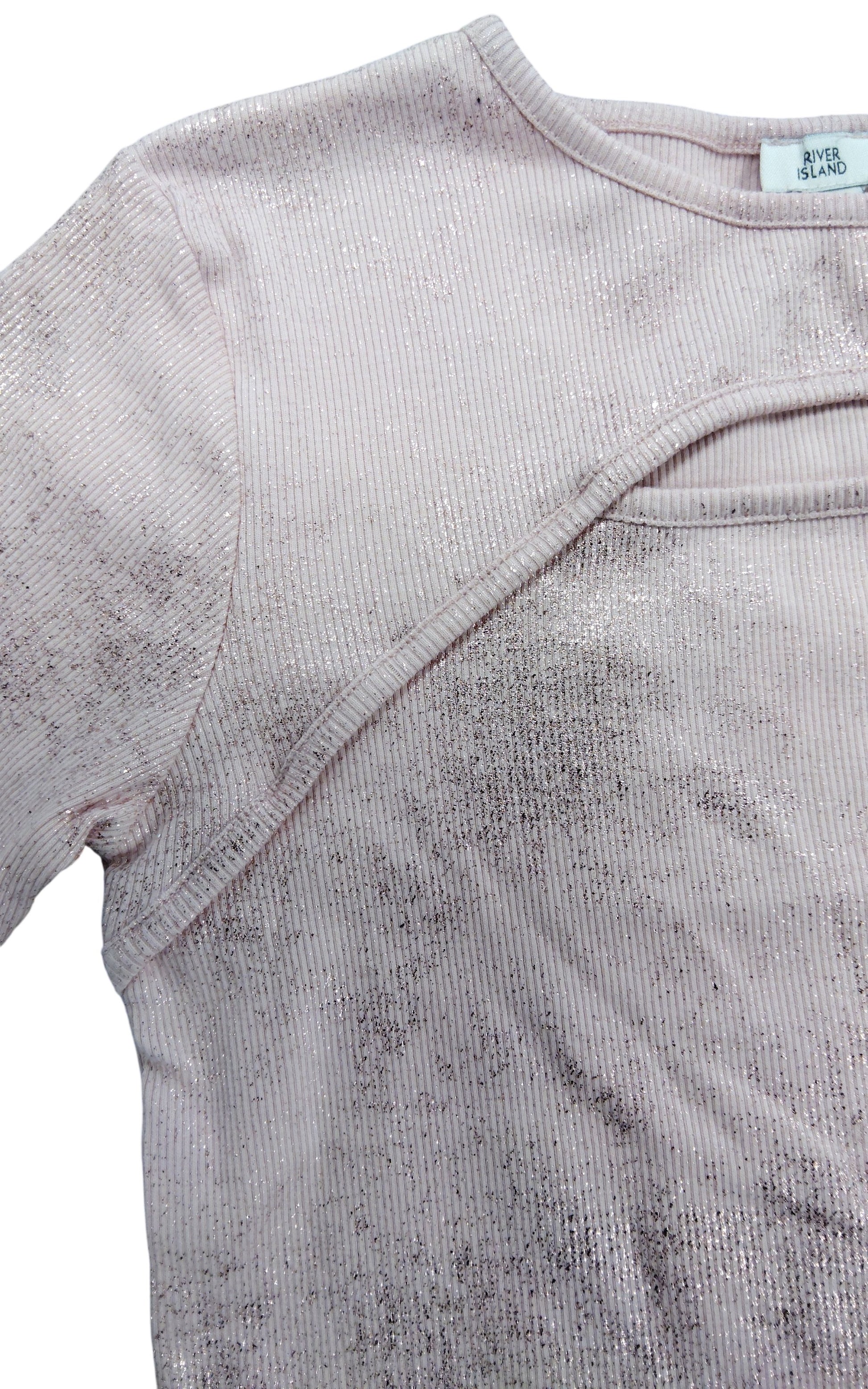 River Island Girls Pink Shimmer Cut Out Short Sleeve Top Age 11-12