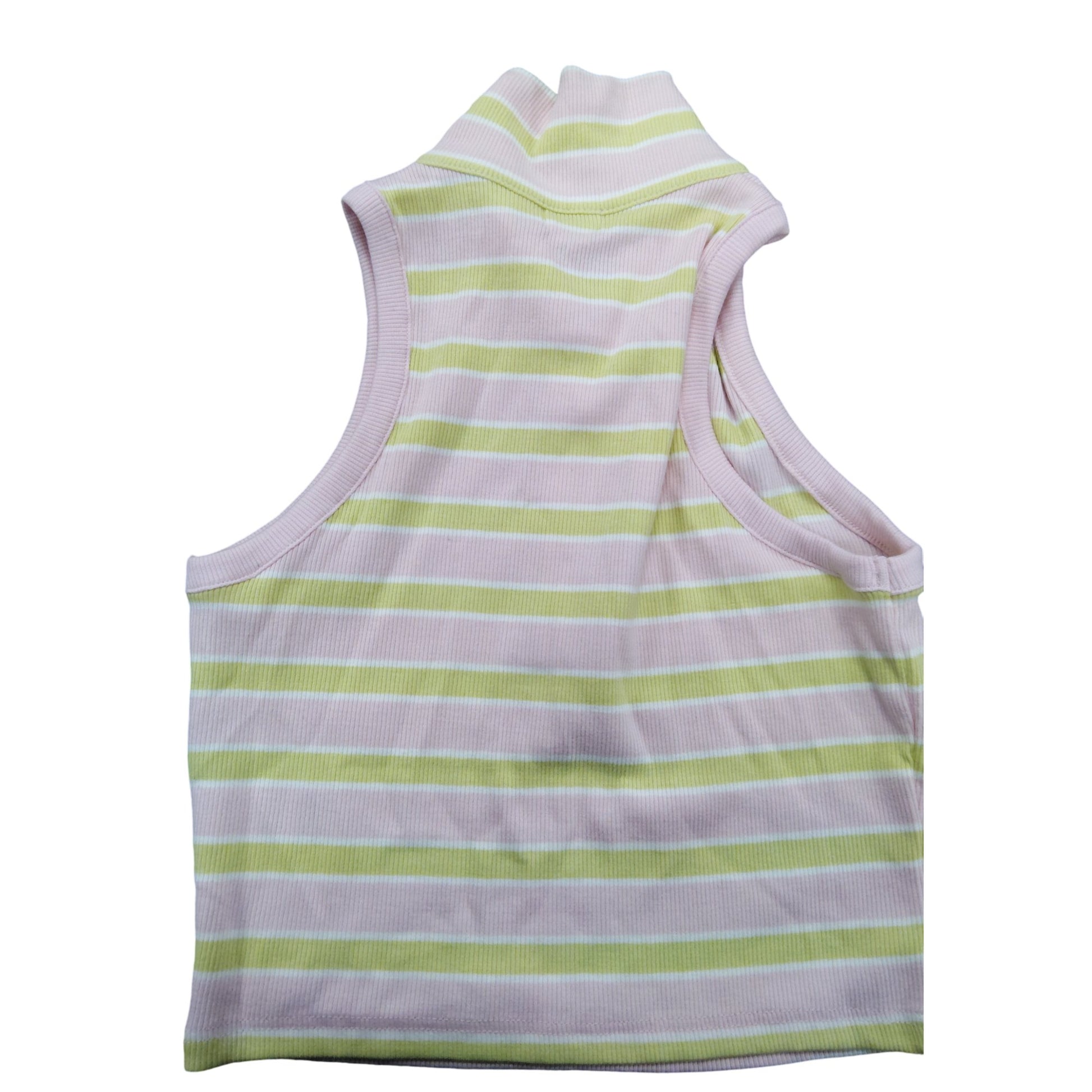 River Island Girls Sleeveless Polo Top 9 10 Years Pink Yellow Striped