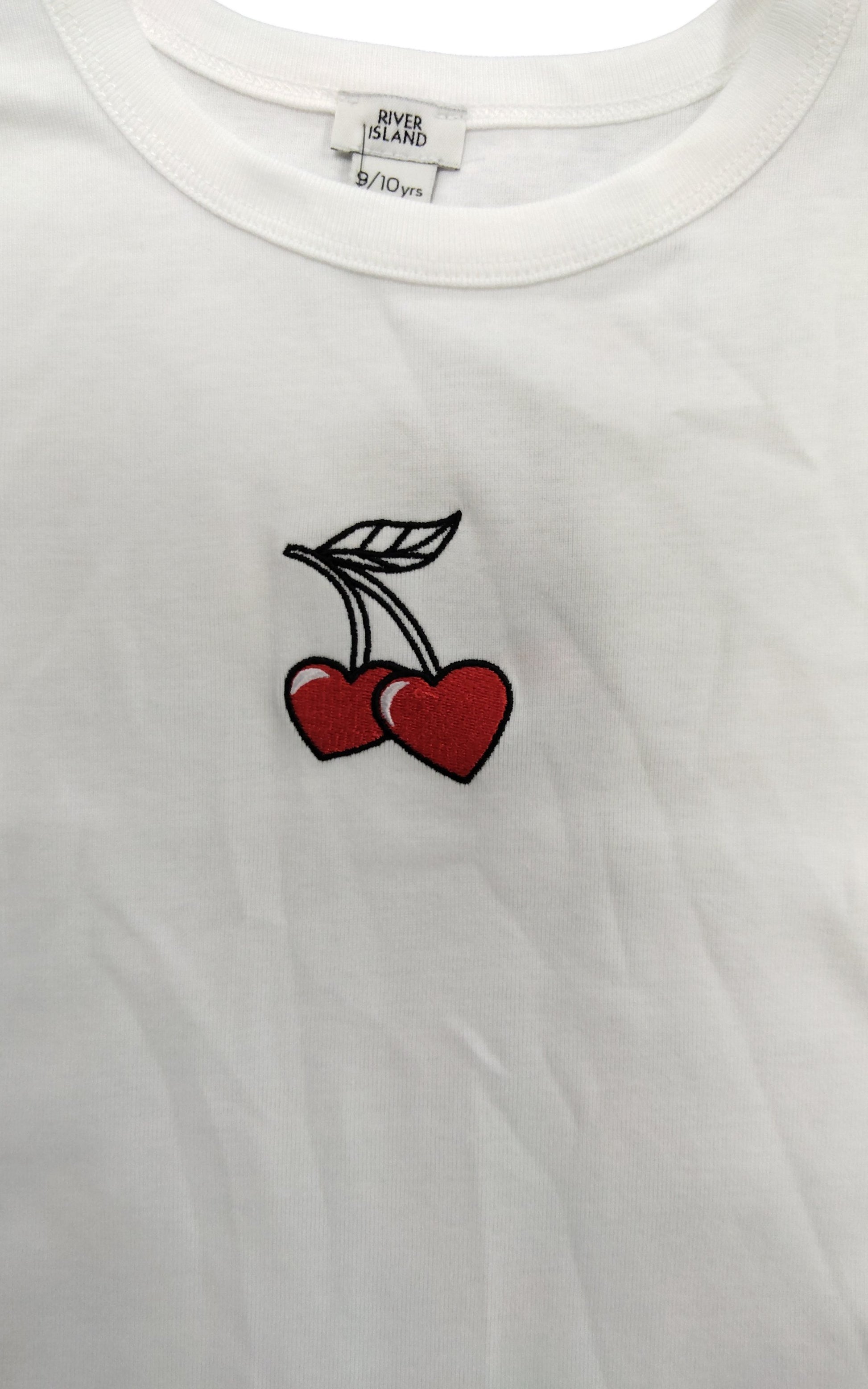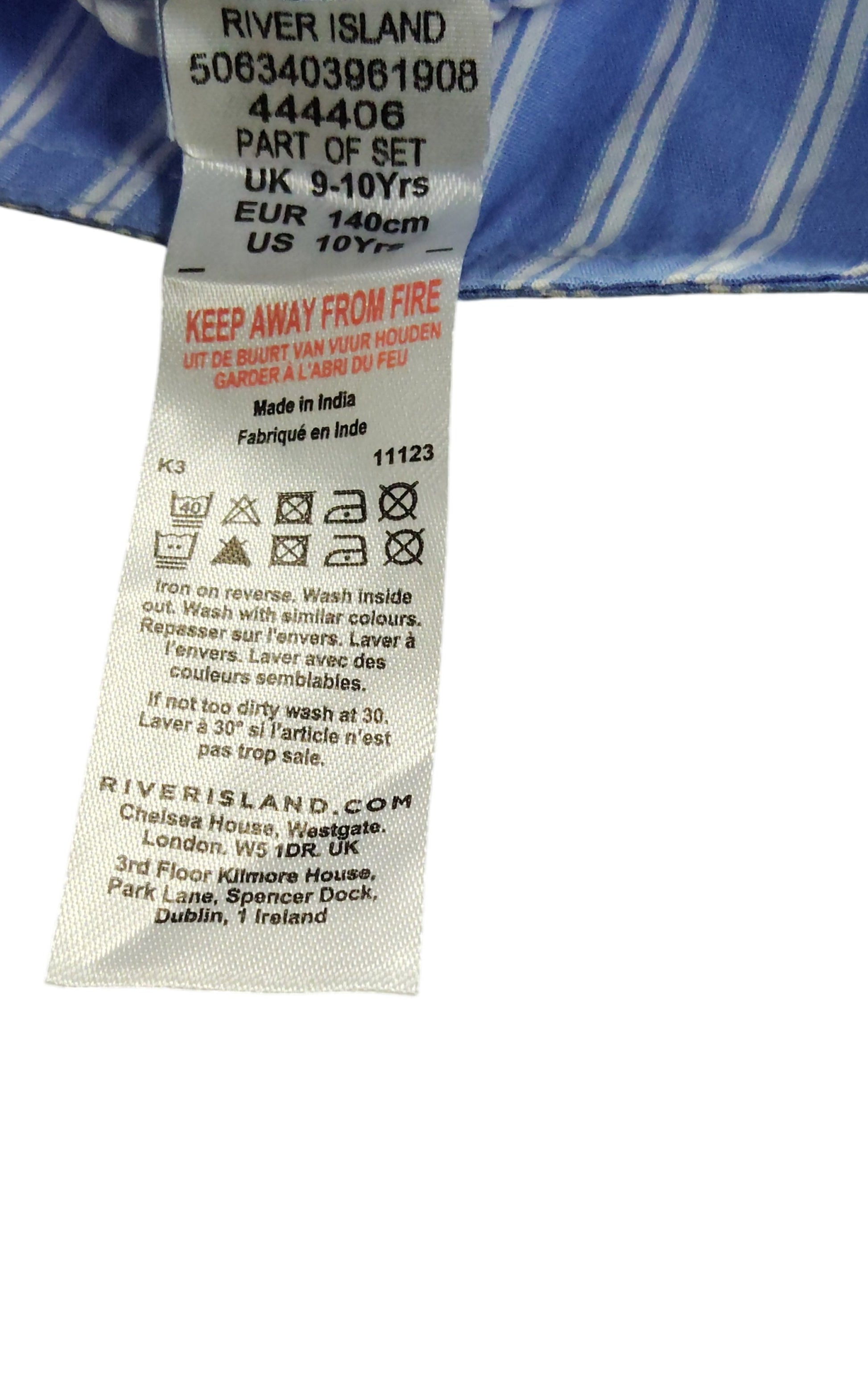 River Island Girls T-Shirt And Skirt Set Size 9-10 Years White Blue Striped